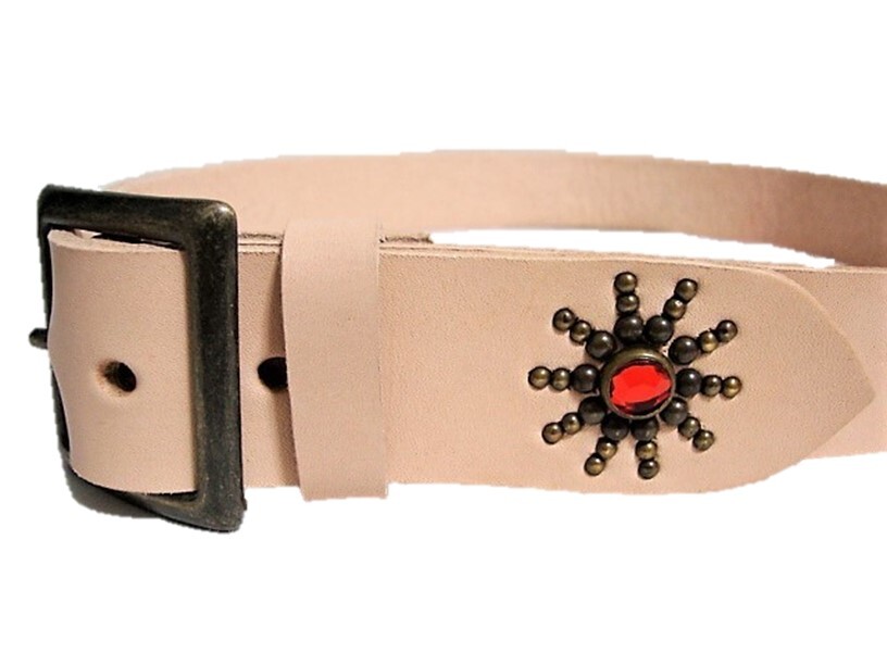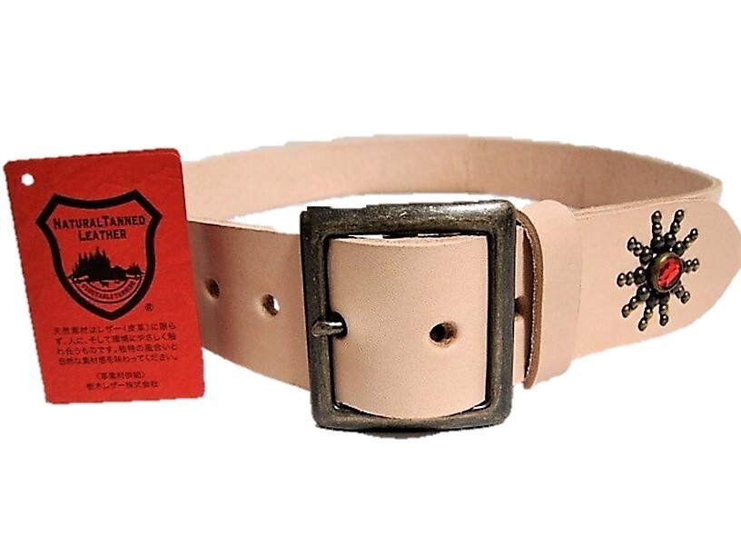 栃木レザー エンドオンリースタッズベルト ナチュラル(レッドスポッツ) ヴィンテージタイプ 一枚革