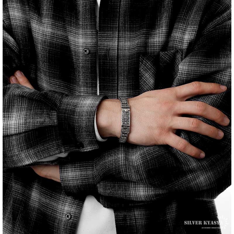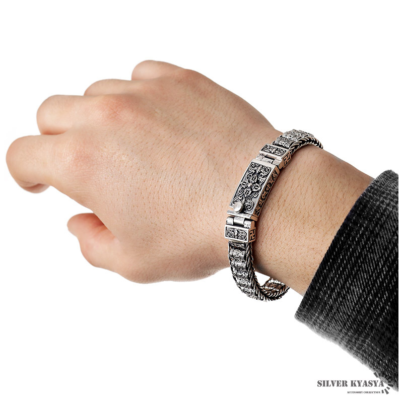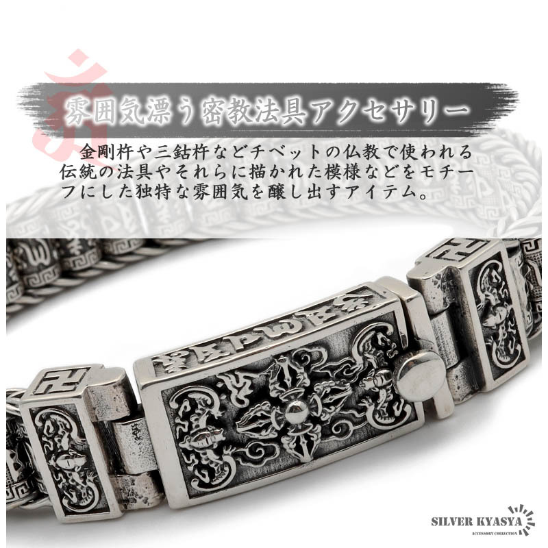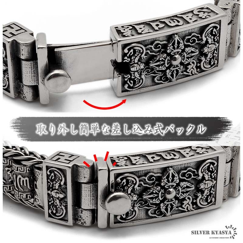 六字真言 ブレスレット メンズ シルバー925 チェーンブレスレット 銀 金剛杵 マニ車 ギミック 金属アレルギー 専用BOX付属
