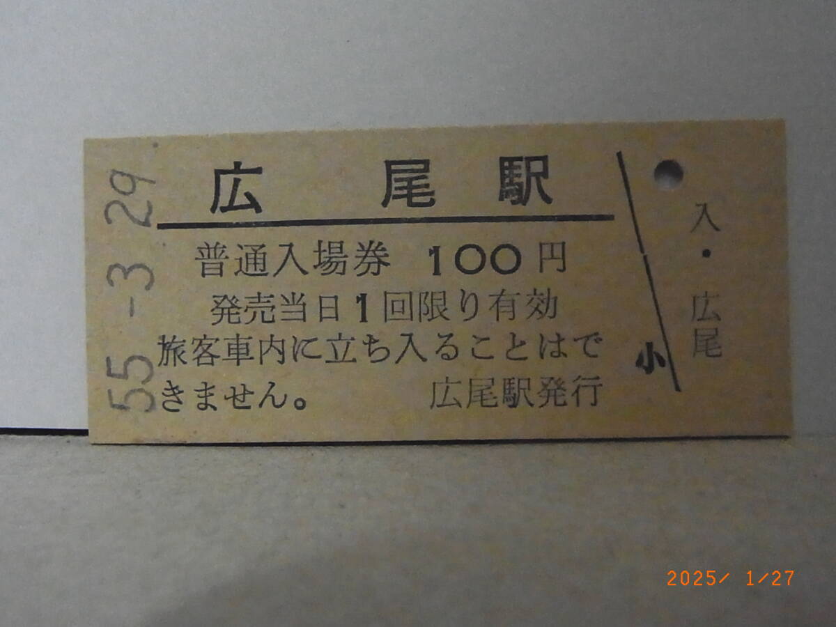 国鉄 広尾線 広尾駅 100円普通入場券 昭55.3.29 1589 ★送料無料★