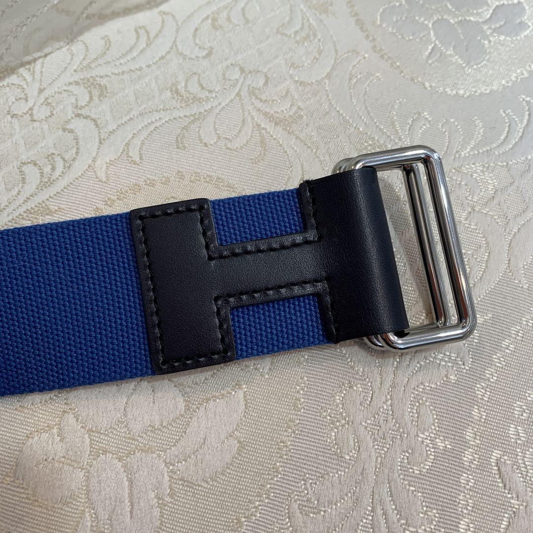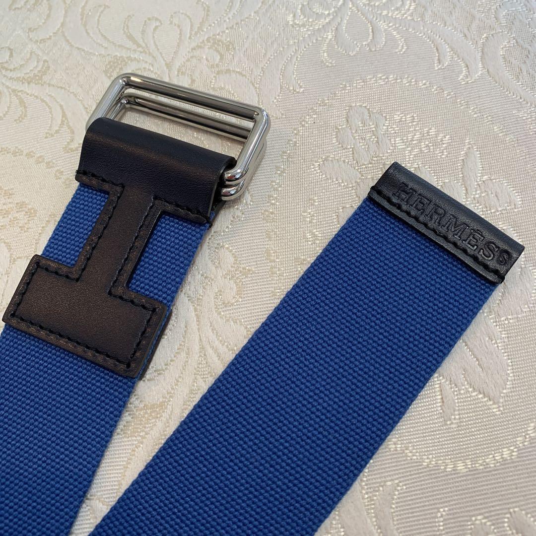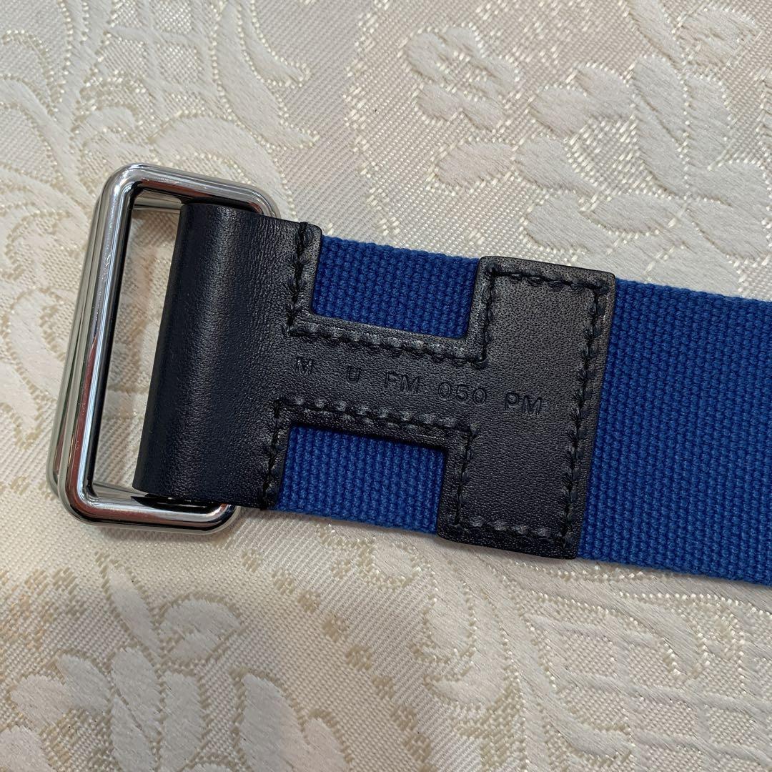 ノマドベルト ガチャベルト ノマド エルメス テキスタイル キャンバス レザー 牛革 カーブレザー カジュアル ベルト メンズ ブルー Hロゴ
