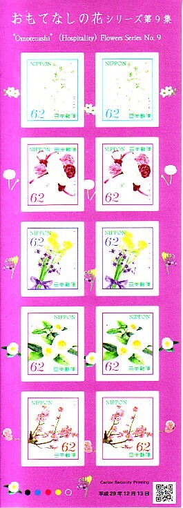 「おもてなしの花 シリーズ第9集」の記念切手です (62円切手X10枚)。送料は普通110円(郵送 普通郵便)になります。