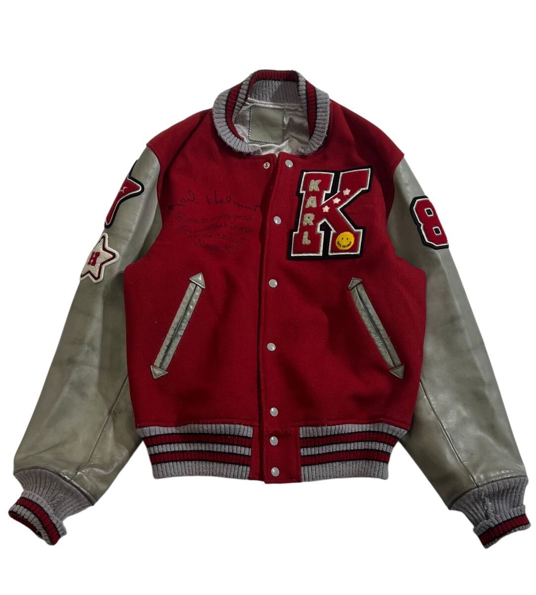 ロゴ 刺繍 85 ナンバリング ワッペン 袖革 本革 牛革 レザー 中綿入 ウール スタジアム ジャンパー スタジャンになり使い勝手もよく大変格好いいです