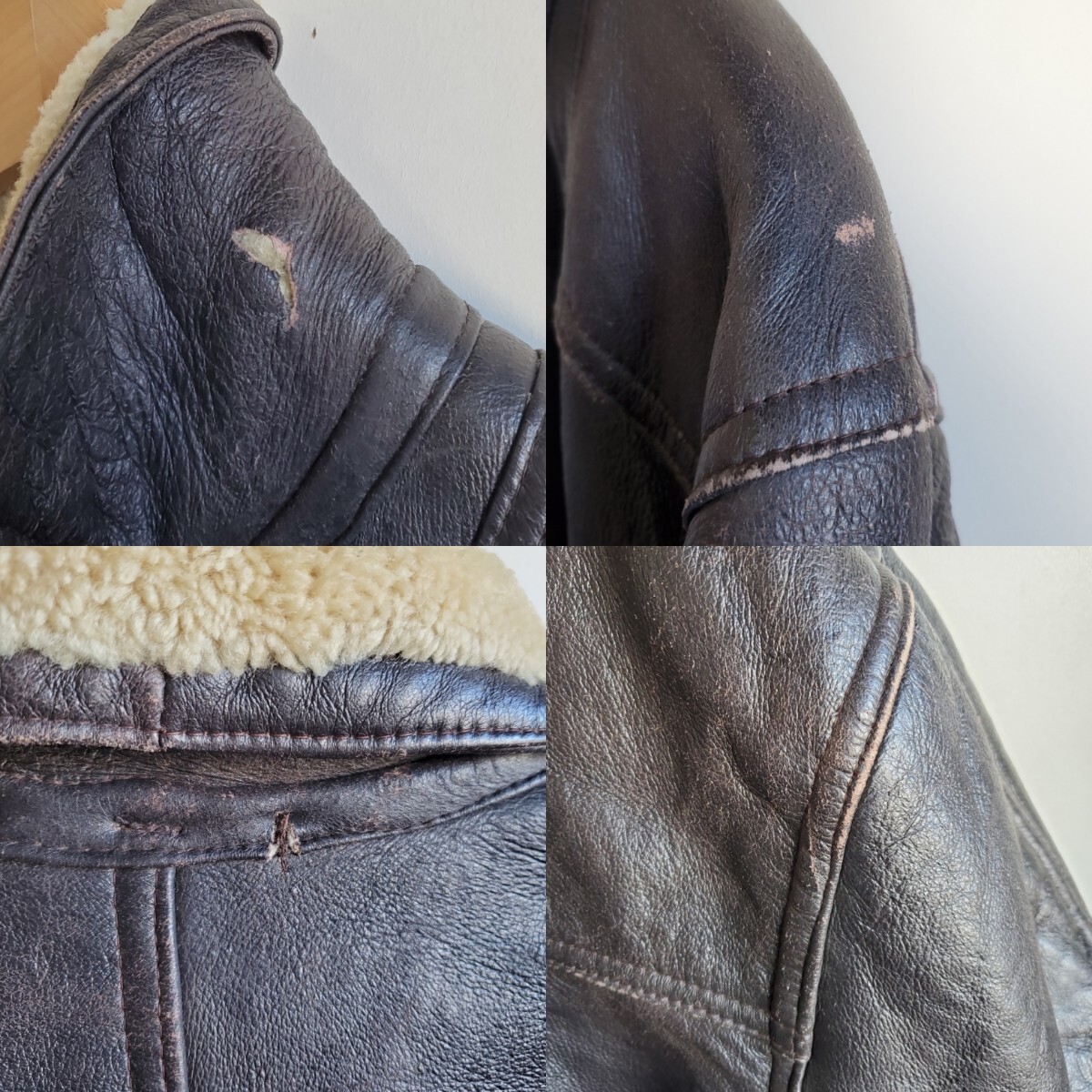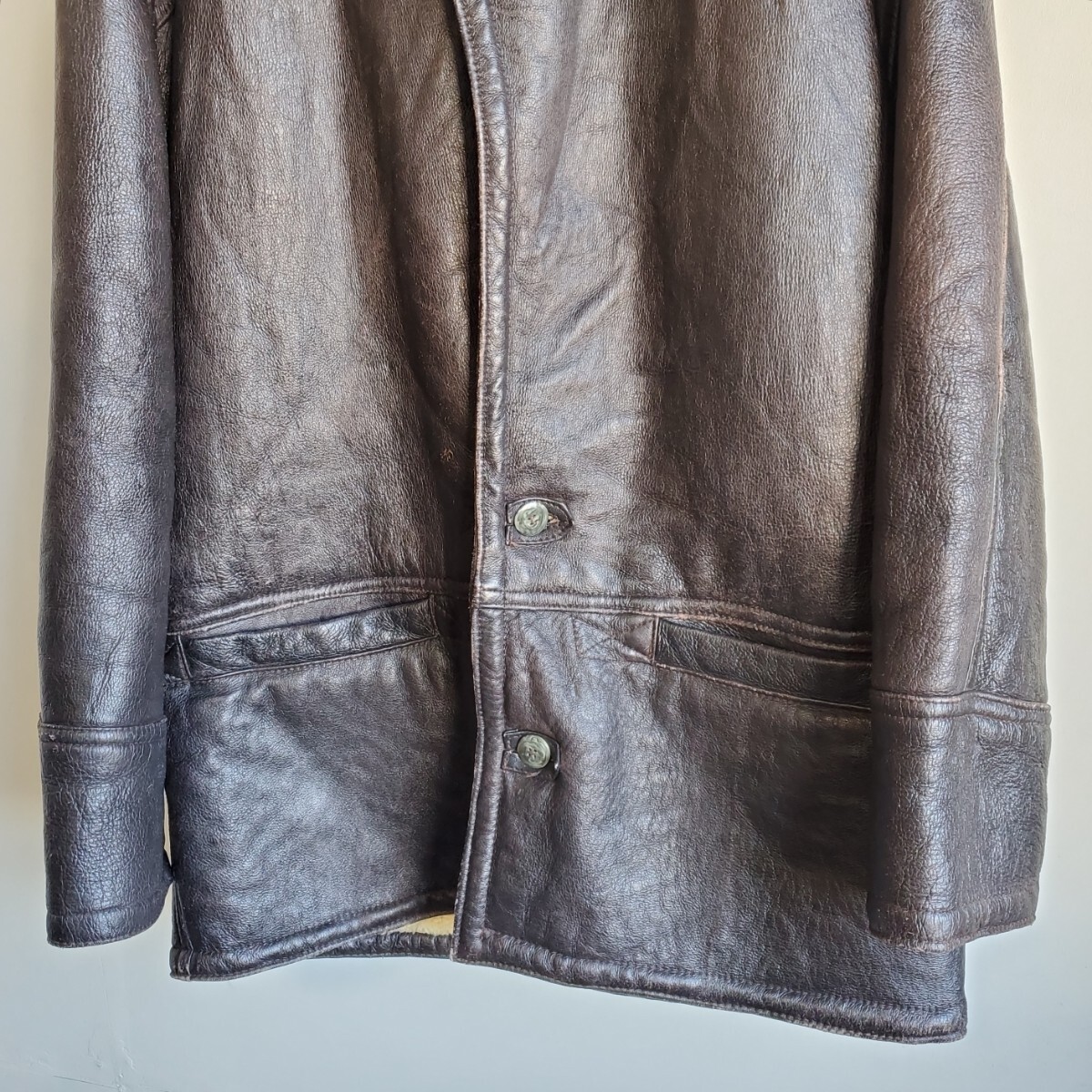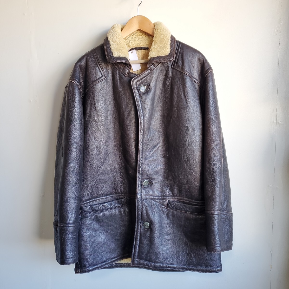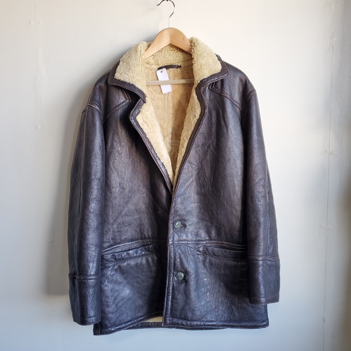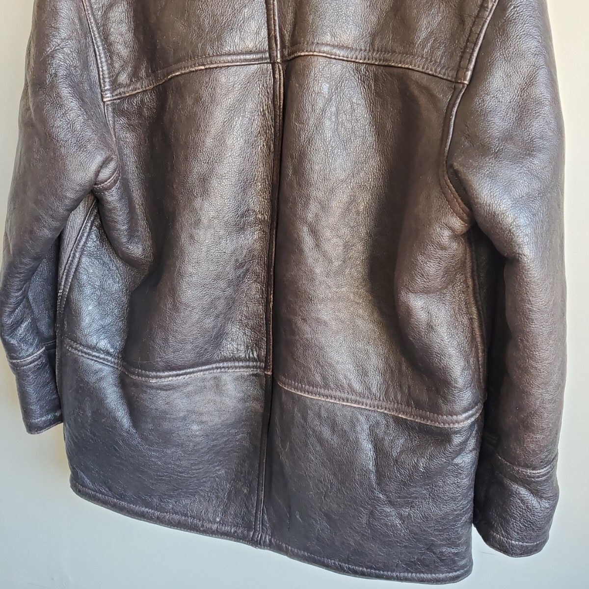 H3◆【sizeXL位】ORIGINAL SHEARLING ムートンコート ジャケット 濃茶 ダークブラウン シープスキン 本革 レザー 中古 USED ボアジャケット