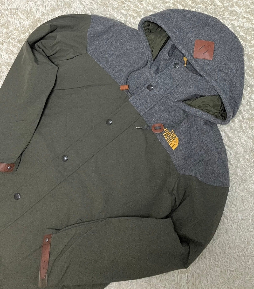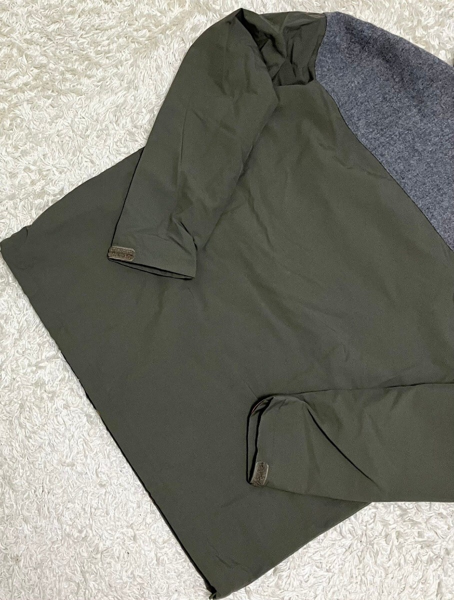 ※上記の実寸を必ずご確認下さい。素材が読めませんが、カーキの部分がナイロン系、グレーの部分はウール系だと思います。
