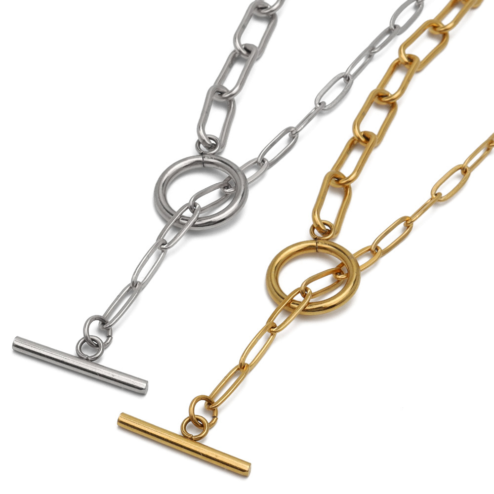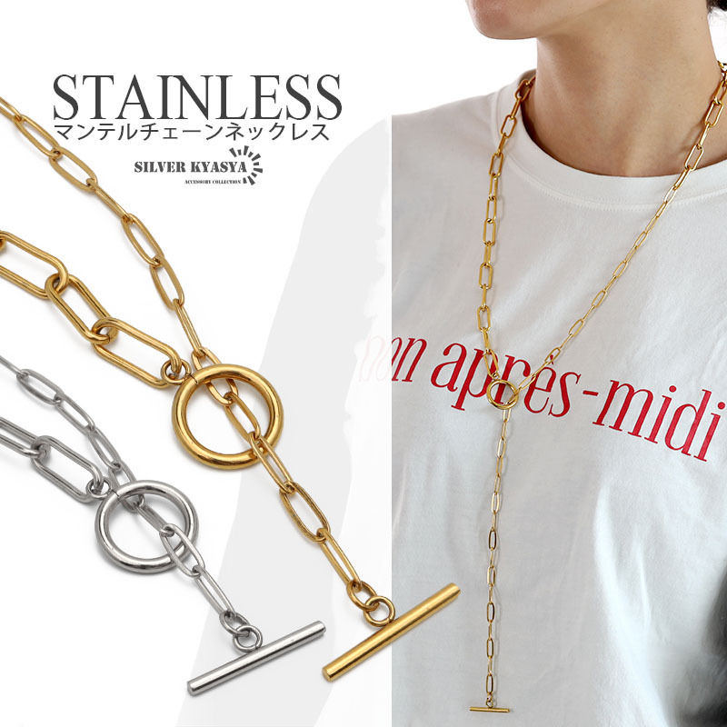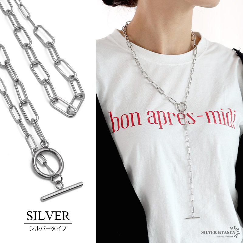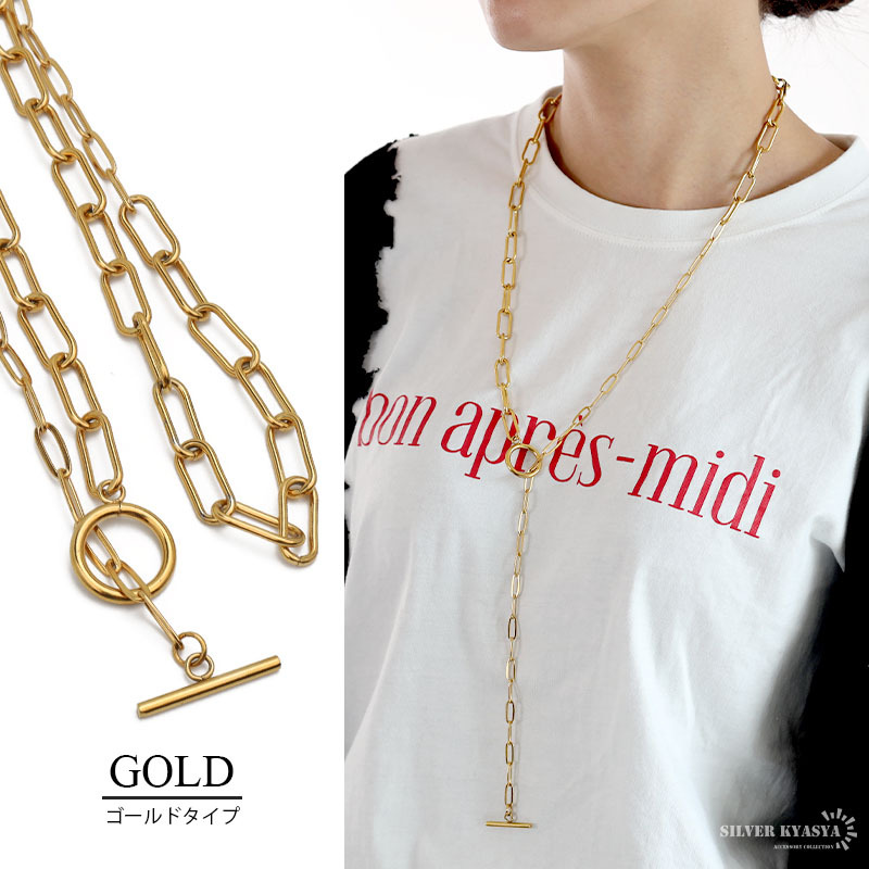 長めなY字チェーンネックレス。重ね付けにも最適なアイテム。チェーンの太さに変化をつけることでお洒落度を加速させたアイテム。