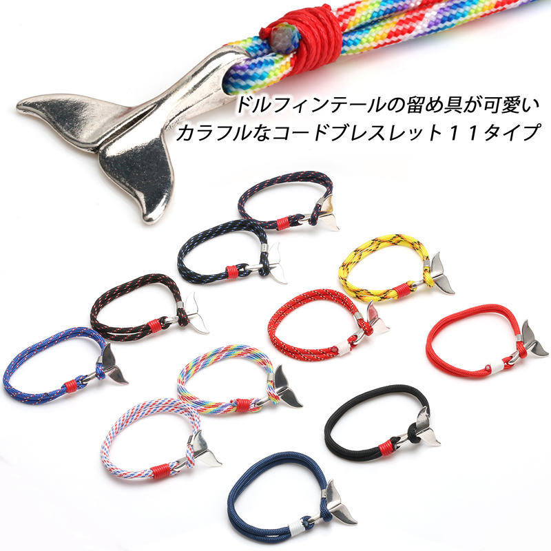 ■ドルフィンテール(イルカの尻尾)のモチーフが可愛らしいカラフルなコードブレスレット