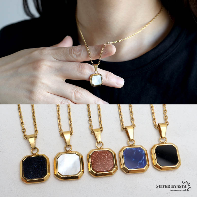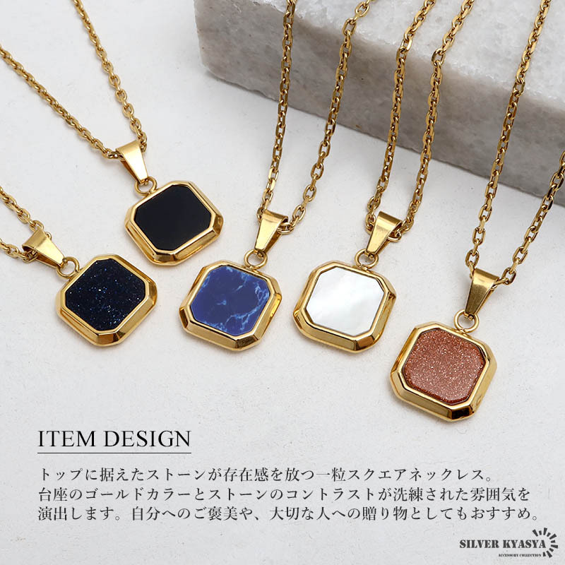 トップに据えたストーンが存在感を放つ一粒スクエアネックレス。台座のゴールドカラーとストーンのコントラストが洗練された雰囲気を演出します。自分へのご褒美や、大切な人への贈り物としてもおすすめ。