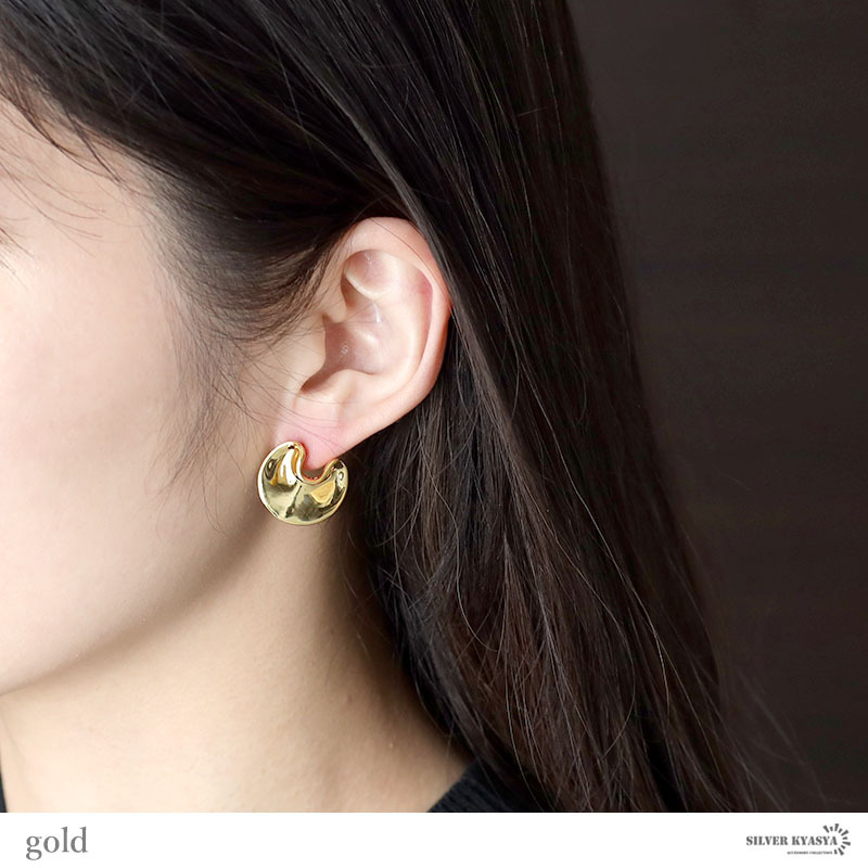 円の上部を優しく摘んだようなユニークなデザインが魅力のピアスです。