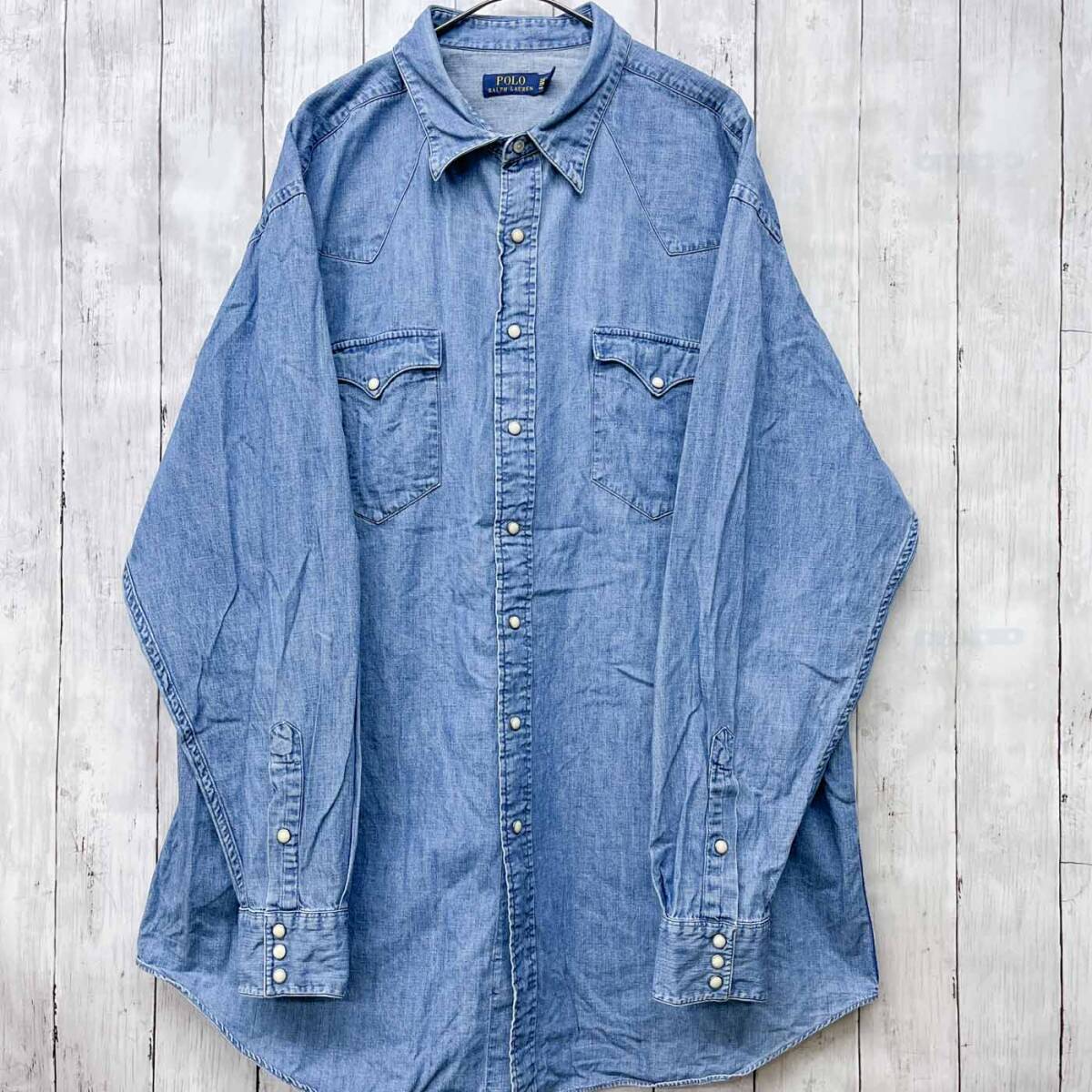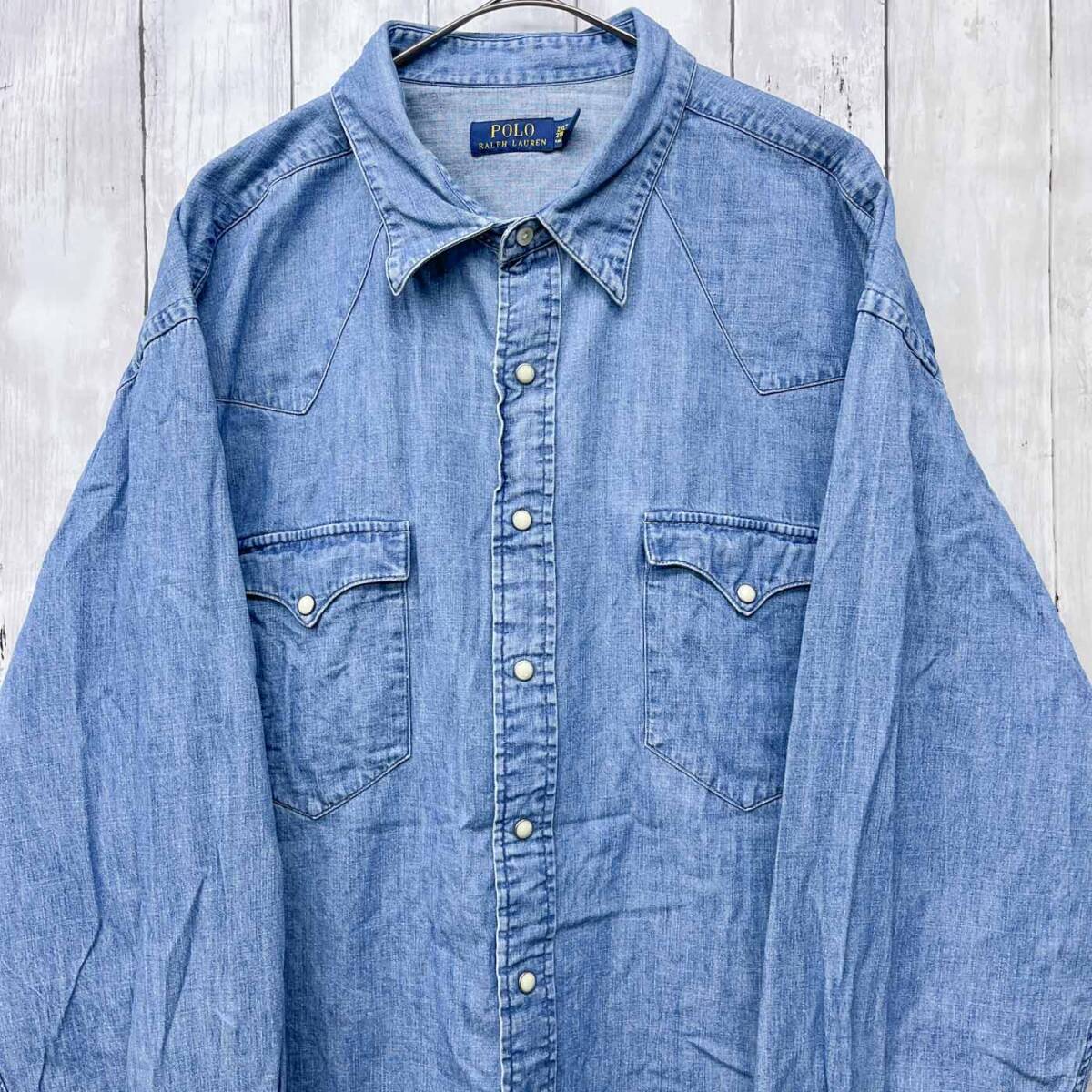 ラルフローレン Ralph Lauren ウエスタンデニムシャツ 長袖シャツ メンズ コットン100% 2XLT/2TGLサイズ 6-235