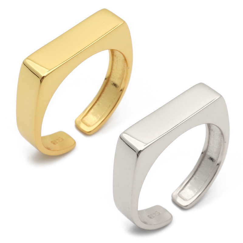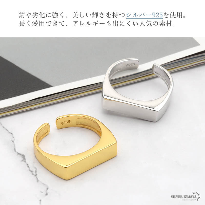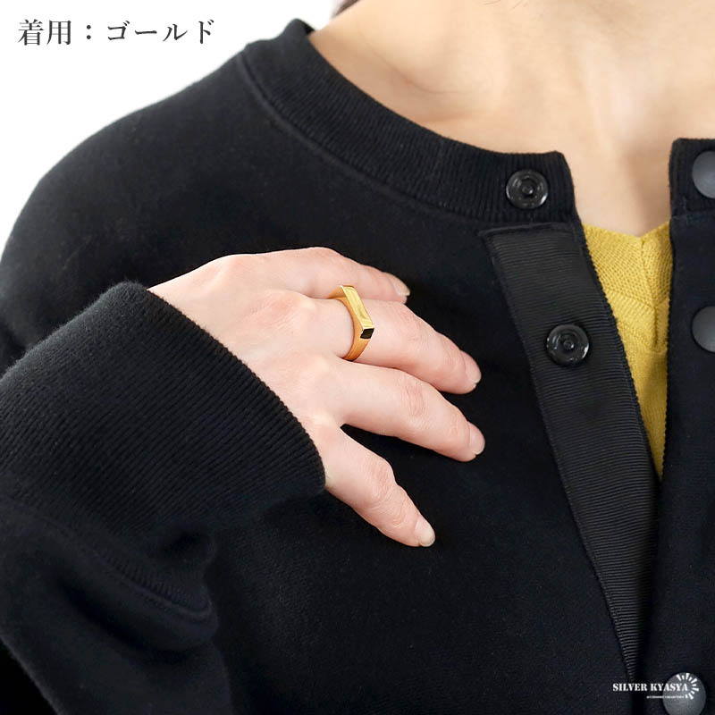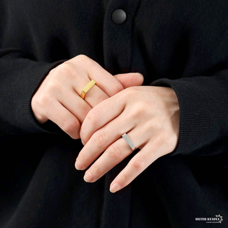 少し細めの使いやすさ抜群な印台リング。角のあるフォルムがかっこいいシンプルアイテム。