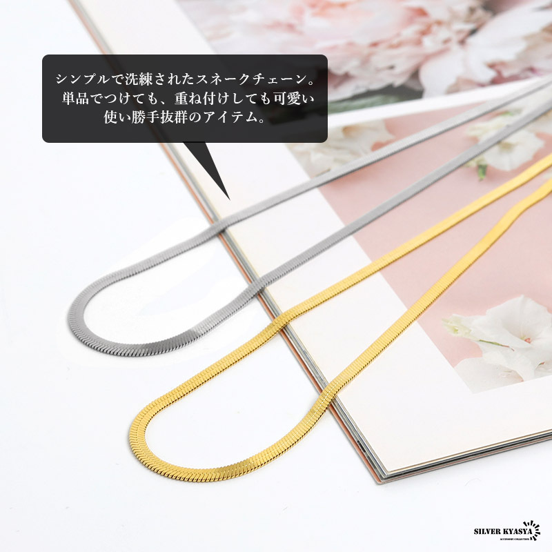 ・シンプルで洗練されたスネークチェーン。シルバーとゴールドの2カラー展開。