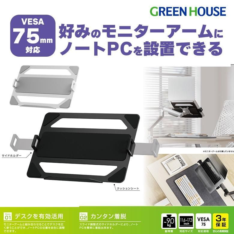 ノートPCの位置を自在に調整できる。※取り付けるモニターアームに依存します。