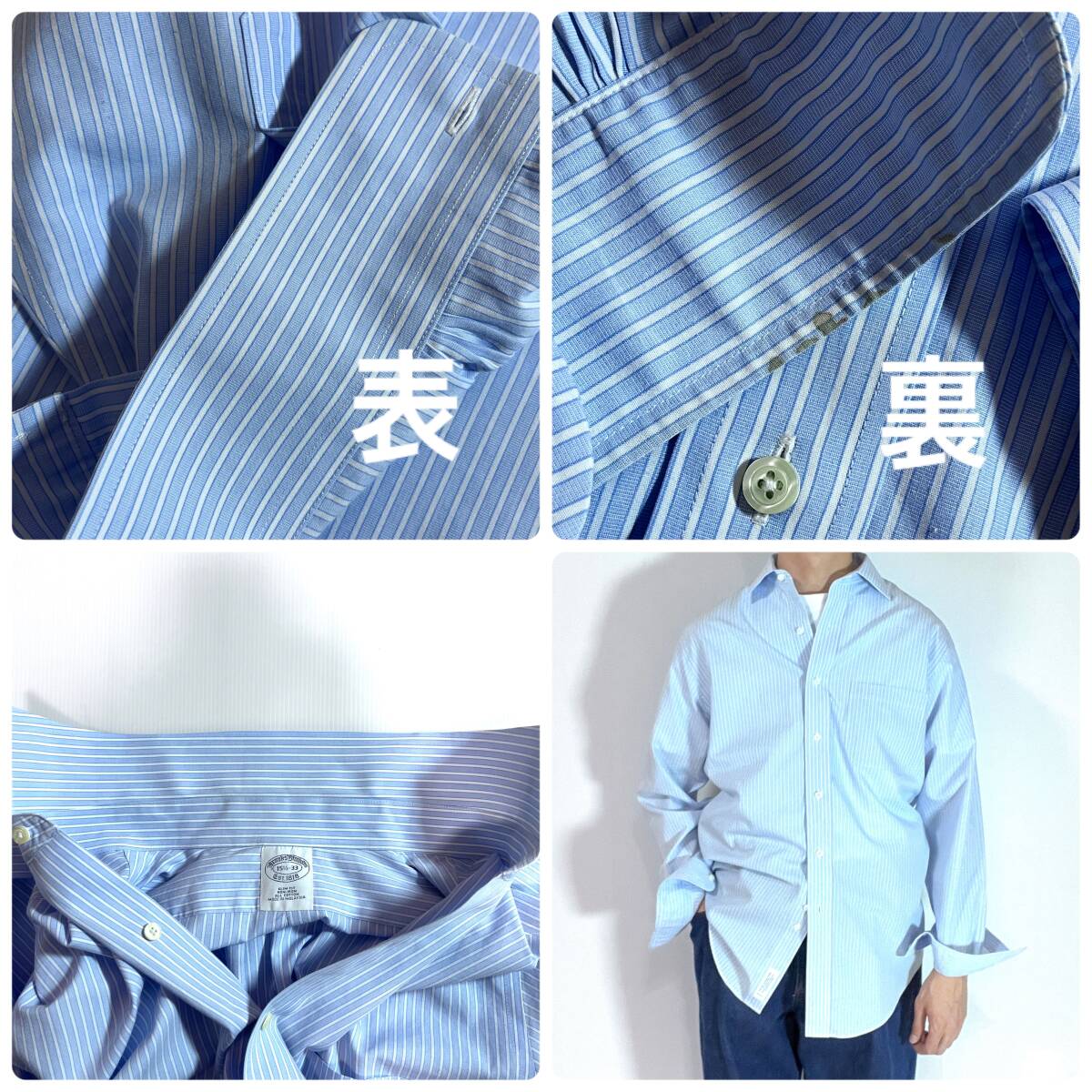 Brooks Brothers ブルックスブラザーズ 15 1/2-33 M相当 ライトブルー ホワイト マルチストライプ長袖シャツ ワイシャツ SLIMFIT v24123063