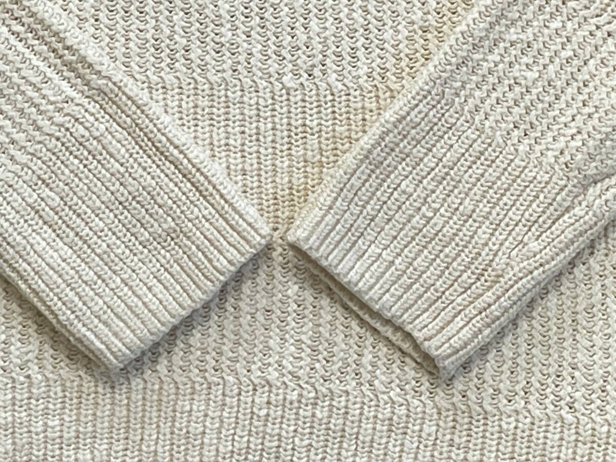 使用による相応のヨレ、シワ、伸縮、毛羽立ち、色褪せ、スレ、汚れ、糸ほつれ、キズ、ホコリ付着等があります。