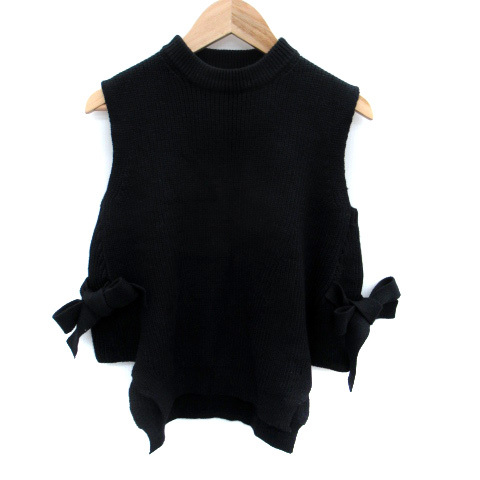 フィフス fifth ニットベスト リボン リブ 黒 ブラック /SM34 レディース