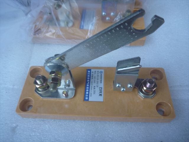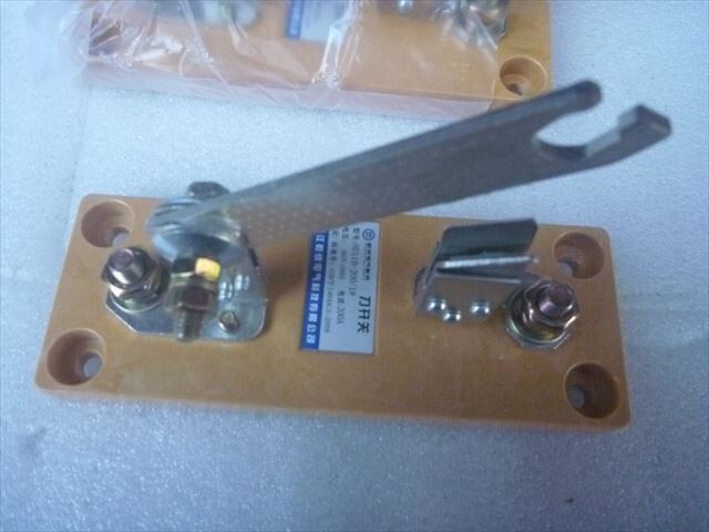 | 商品説明 | ナイフスイッチ 写真より200Aと思われます。 新品3個づつ6個のスイッチとなります。詳細は写真で判断してください。 単純な構造のオン・オフのスイッチです。 倉庫整理品につき現状渡し、ジャンク扱いをご理解ください。 写真では埃がついているいるように映っていますが、新品未使用品になります。 |