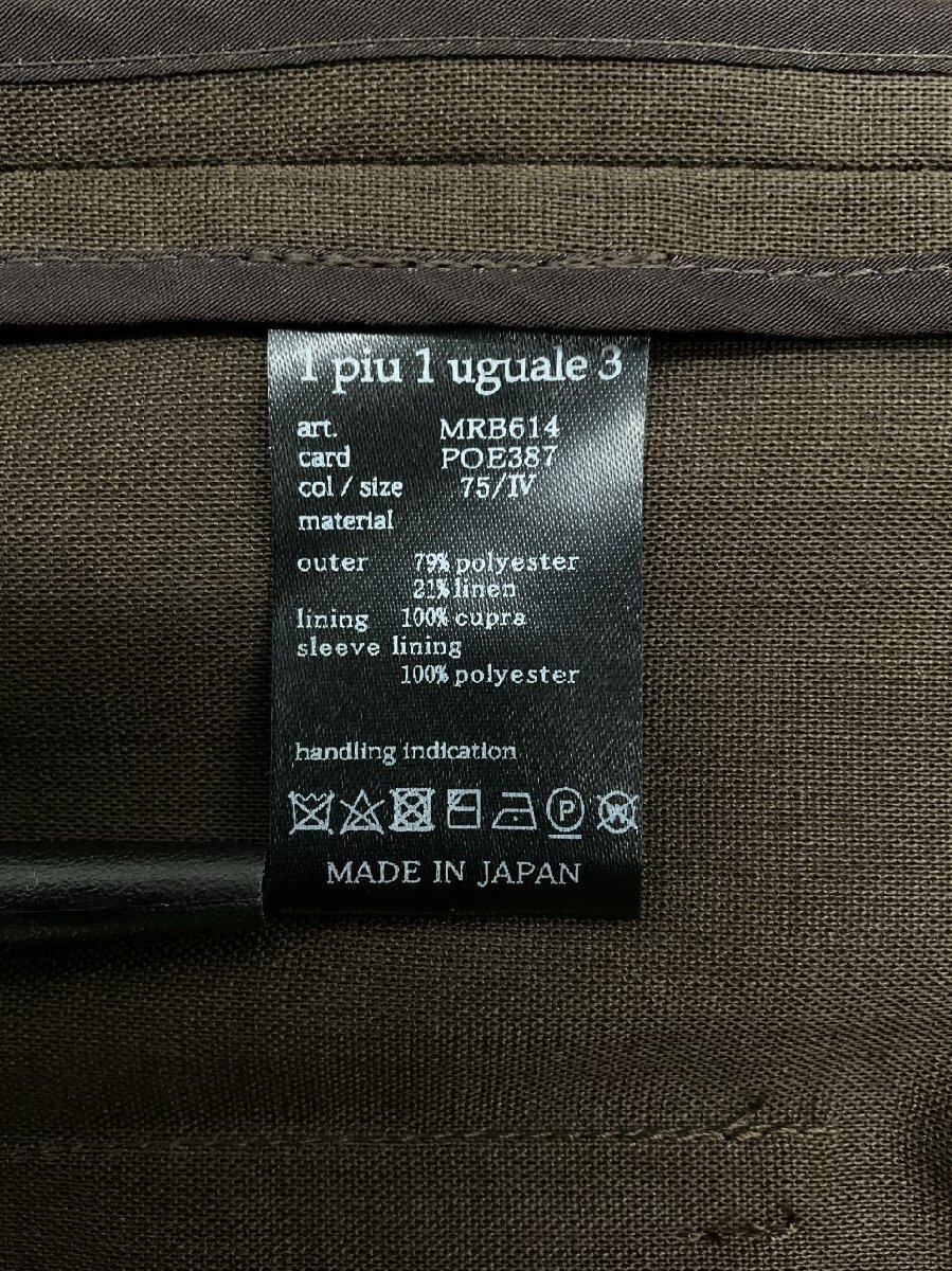 【素材】:outer : polyester 79% linen 21%lining : cupra 100%sleeve lining : polyester 100%