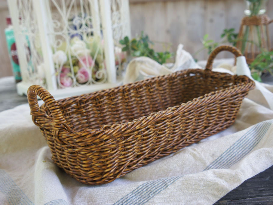 水洗い、水拭きが出来るお洒落な手編みのバスケットです。