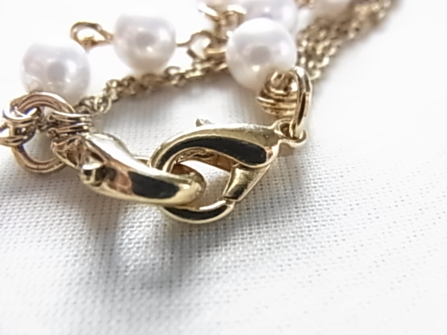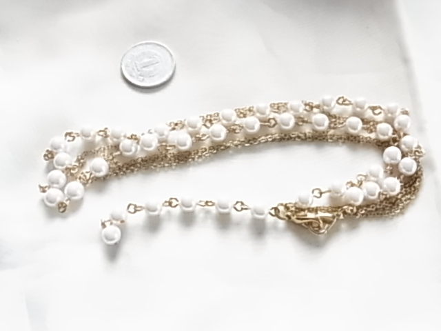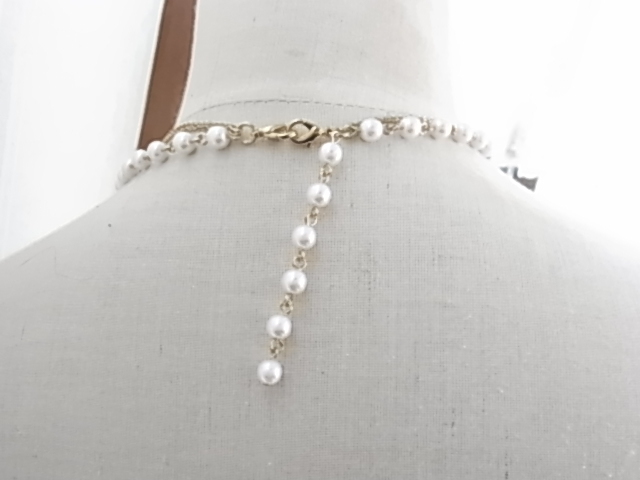後姿に揺れるアジャスター部分もお洒落なプラスチックパールストーンが上品な印象 ゴールドトーンのチェーンとの3連 ネックレス●