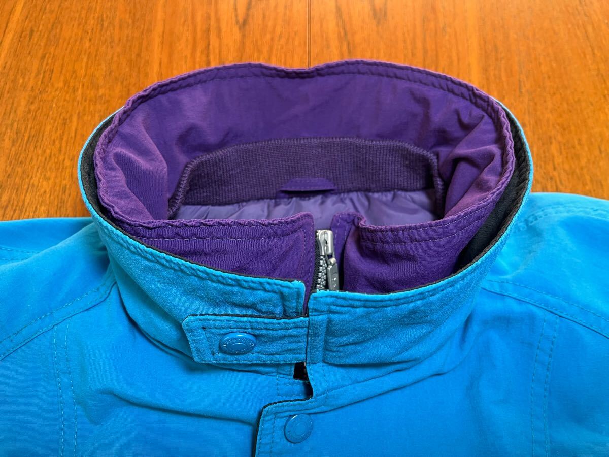 ネック部分がレイヤードになっています、ボタンを開けるとジップが現れます。