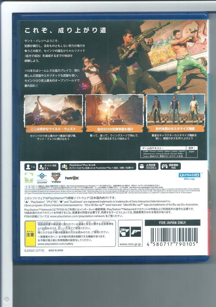 ●JANコード4580717790105 t1 ☆PS5 Saints Row (セインツロウ) ●商品の状態 ソフトは使用感少なく状態良好ですが、ケースにスレ・イタミがあります。説明書ははじめから付属していません。 ※中古品のため、付属ダウンロードコード・プロダクトコード類の保障はできません。予めご了承ください。 |