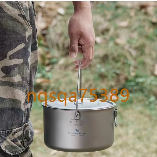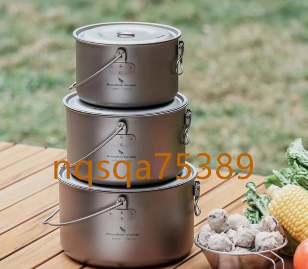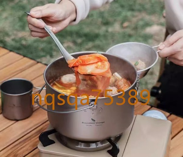 品キャンプ飯の相棒に! チタン製ポット2900ml&お玉のセット 大容量鍋&スプーン パン クッカー 屋外用調理器具 アウトドア