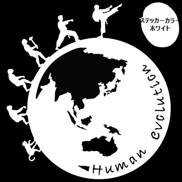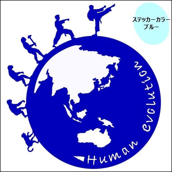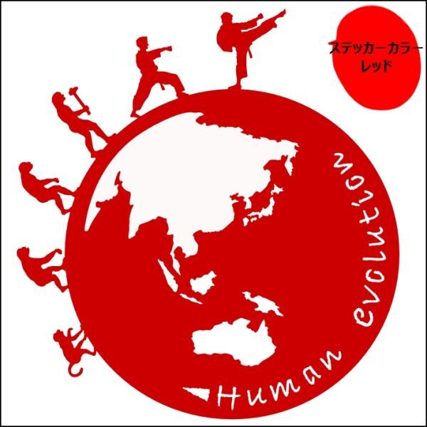 ・商品名 《KA02》16.0×14.9cm【地球型人類の進化-押忍!空手編】カラテ、WKFプレミアリーグ、空手道、テコンドー、KARATE応援ステッカー ・素材 屋外耐候性フィルム、フィルム厚=0.075mm、塩ビ製 ・ステッカータイプ カッティングステッカー(文字や柄が残るタイプ) |