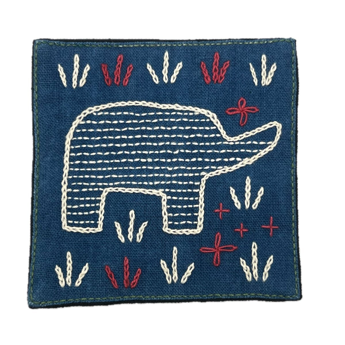 エスニックモチーフ刺繍 アジアン雑貨手芸材料 プリミティブアート ハンドメイドコースター ラオスレンテン族 動物 ゾウ