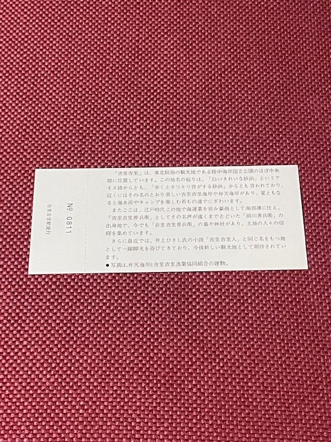 吉里吉里駅記念入場券 盛岡鉄道 (管理番号93-55)