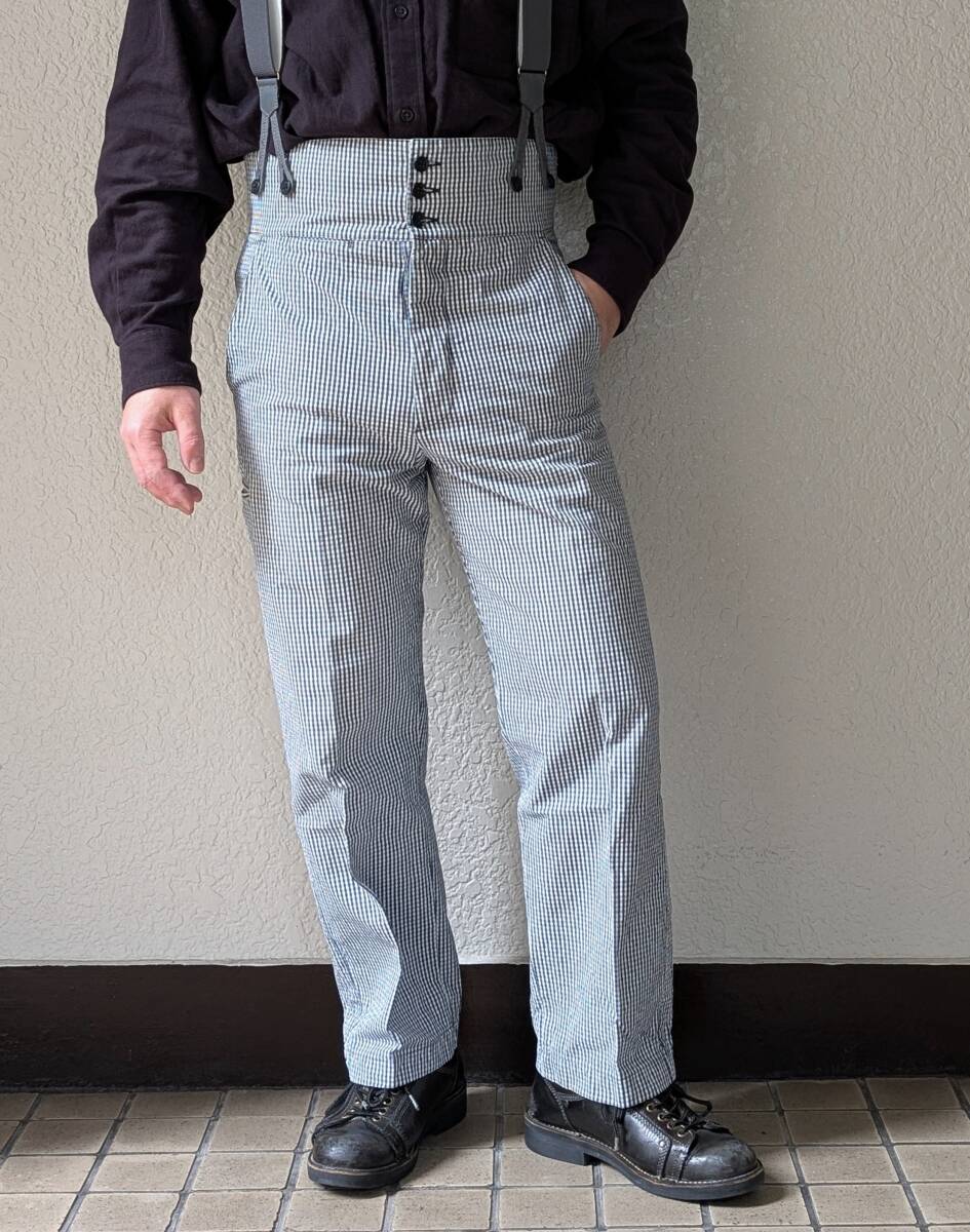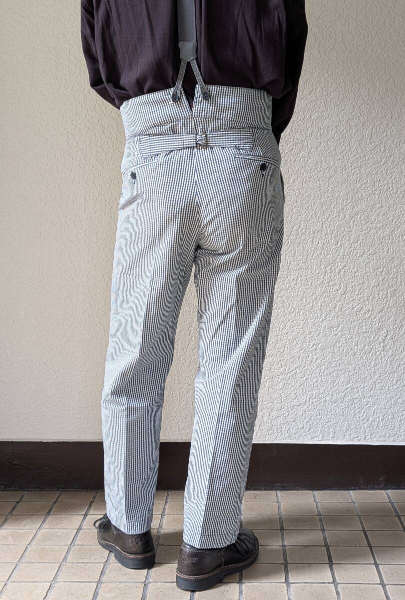 ノータックの細身のシルエットで、おそらく1910~20年代頃の紳士服飾をソースにしたであろうデザイン