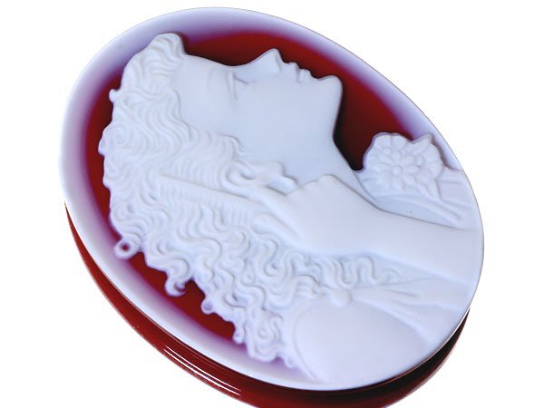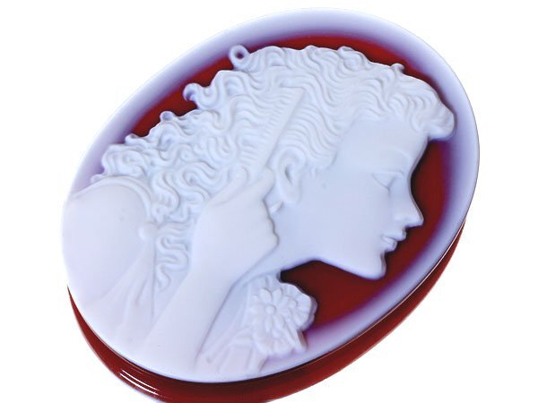 お洒落な女性を繊細に彫刻で演出した、魅力的な高級レッドストーンカメオルースです!