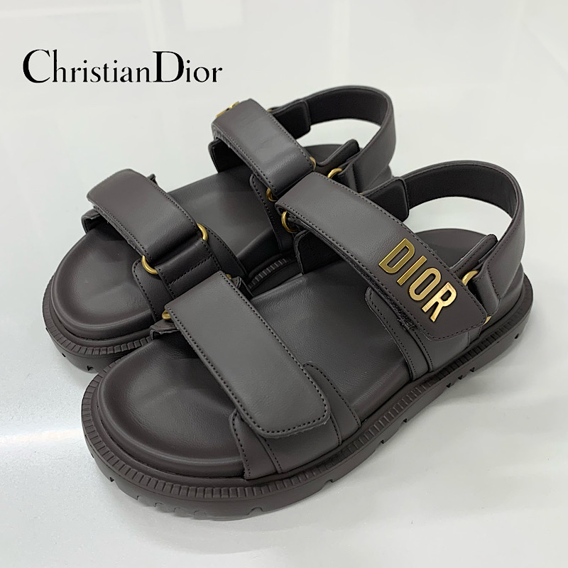 M11369 未使用 クリスチャンディオール DIORACT レザー ロゴ スポーツサンダル グレー