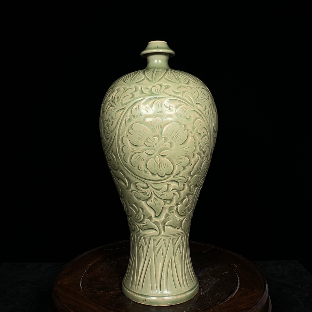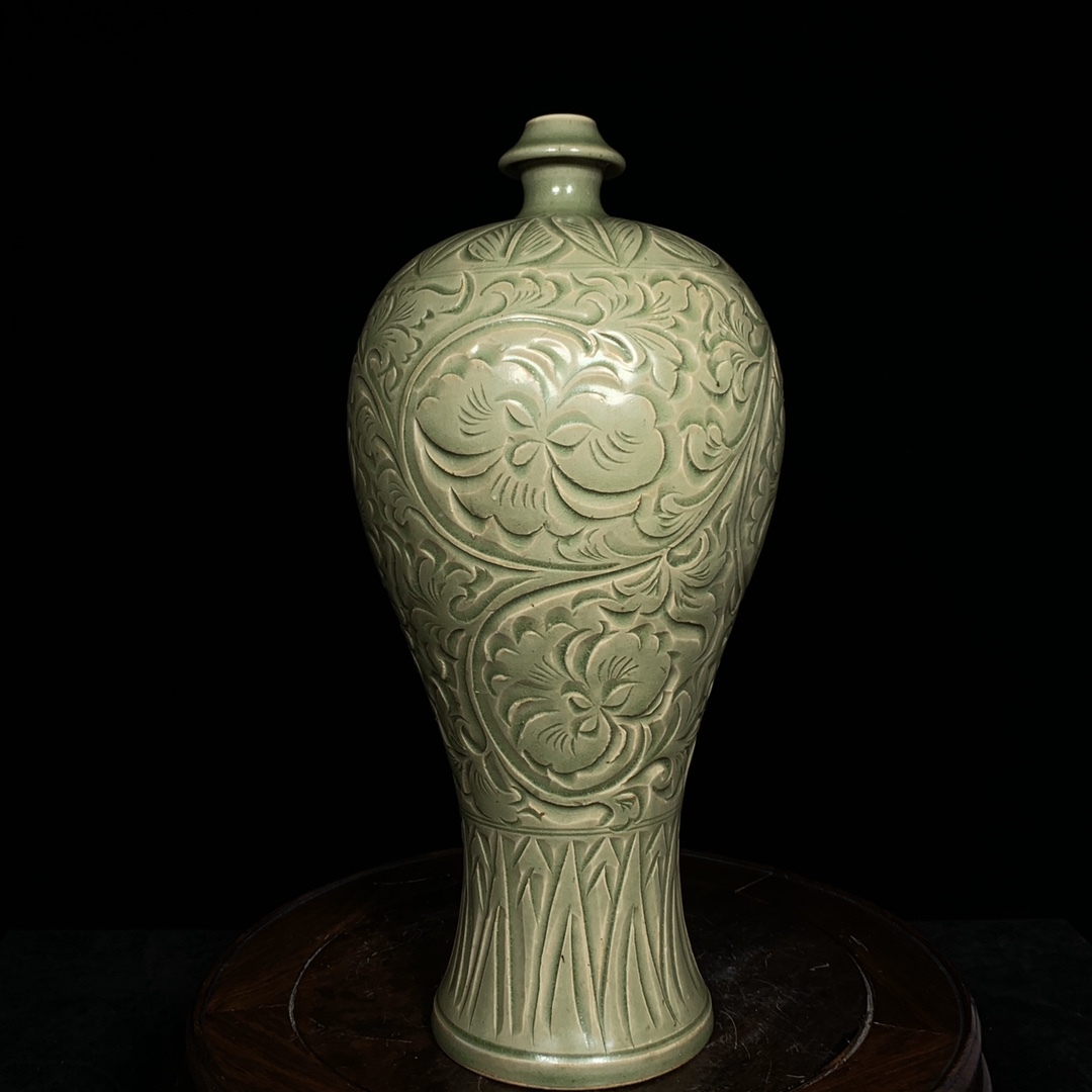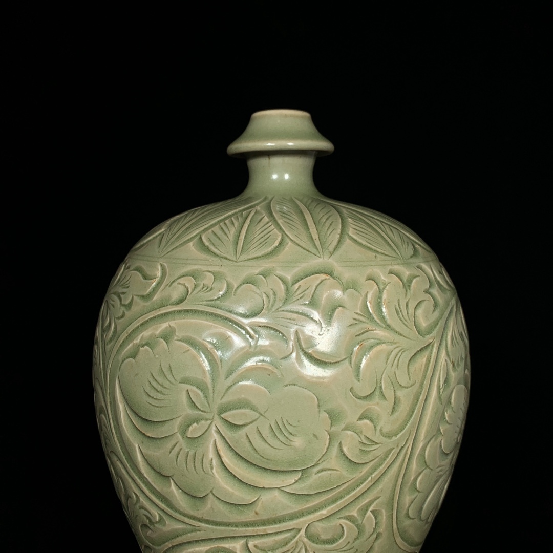 *珍品旧蔵* 宋 耀州窯刻花梅瓶 陶磁器 茶道具 置物 擺件 賞物 極細工 唐物 中国磁器 中国古玩 工芸品 陶芸 ZK0214