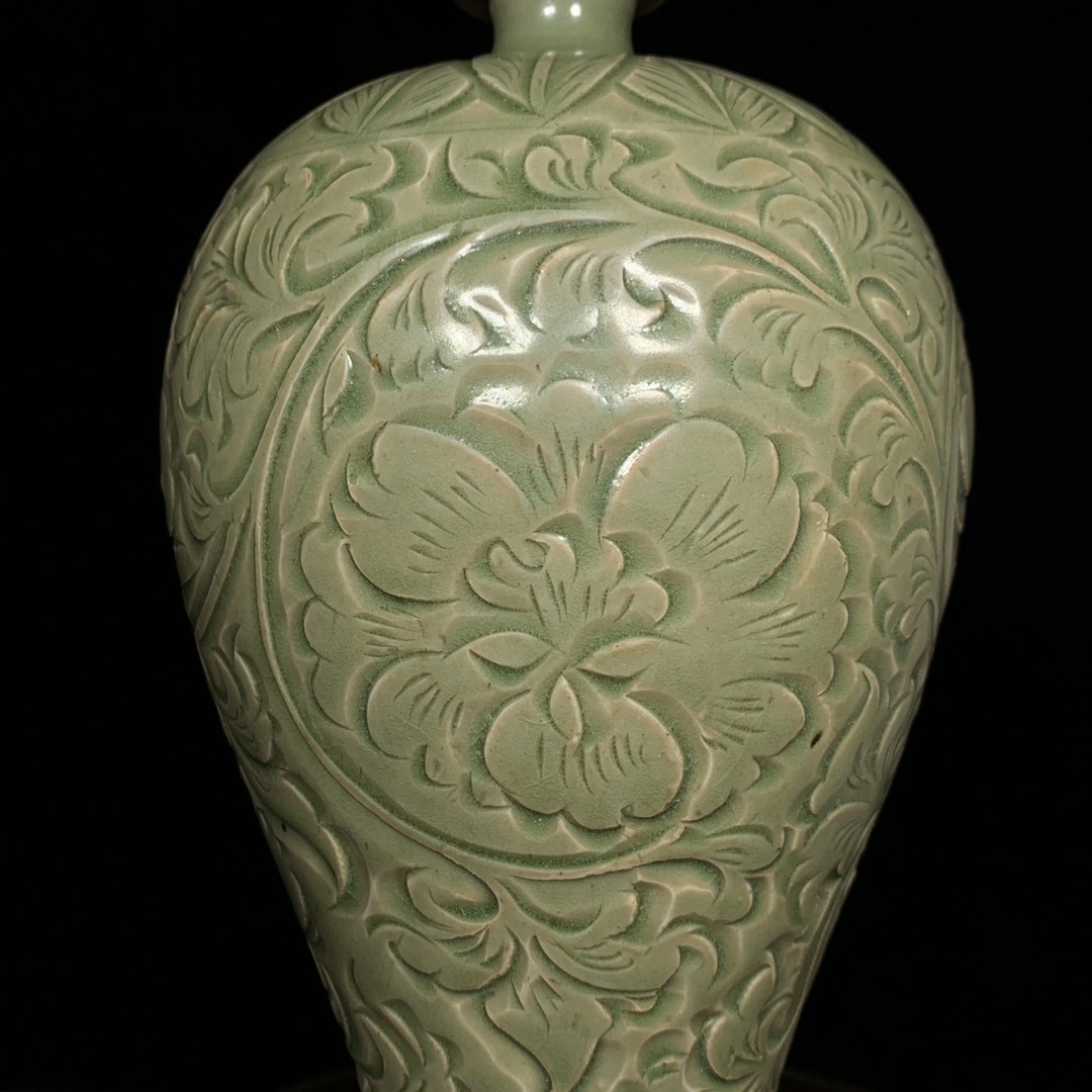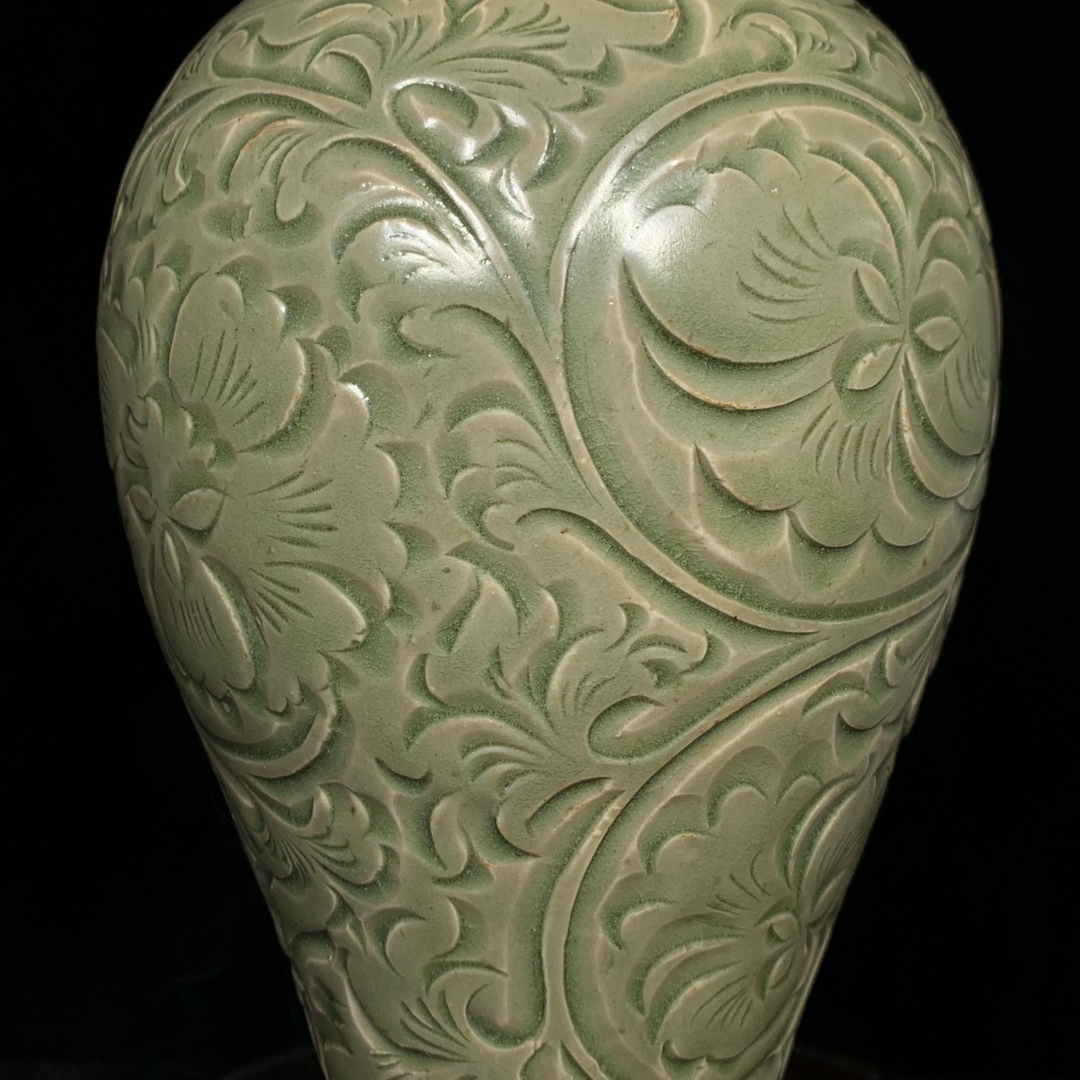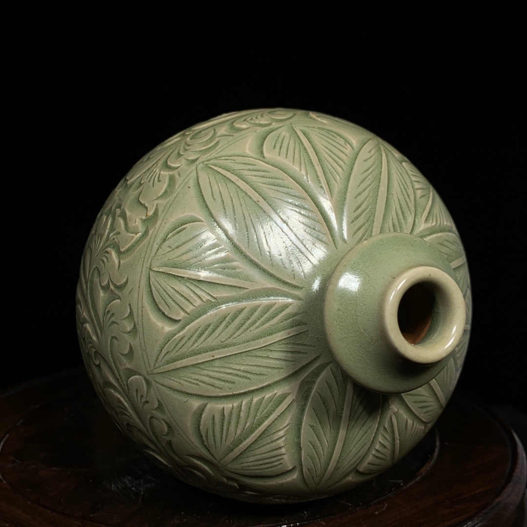 *珍品旧蔵* 宋 耀州窯刻花梅瓶 陶磁器 茶道具 置物 擺件 賞物 極細工 唐物 中国磁器 中国古玩 工芸品 陶芸 ZK0214