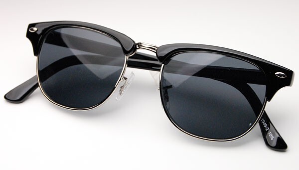 おしゃれ サングラス メンズ レトロ ビンテージ系の サーモント型 UVカット 新品 ブラック 黒