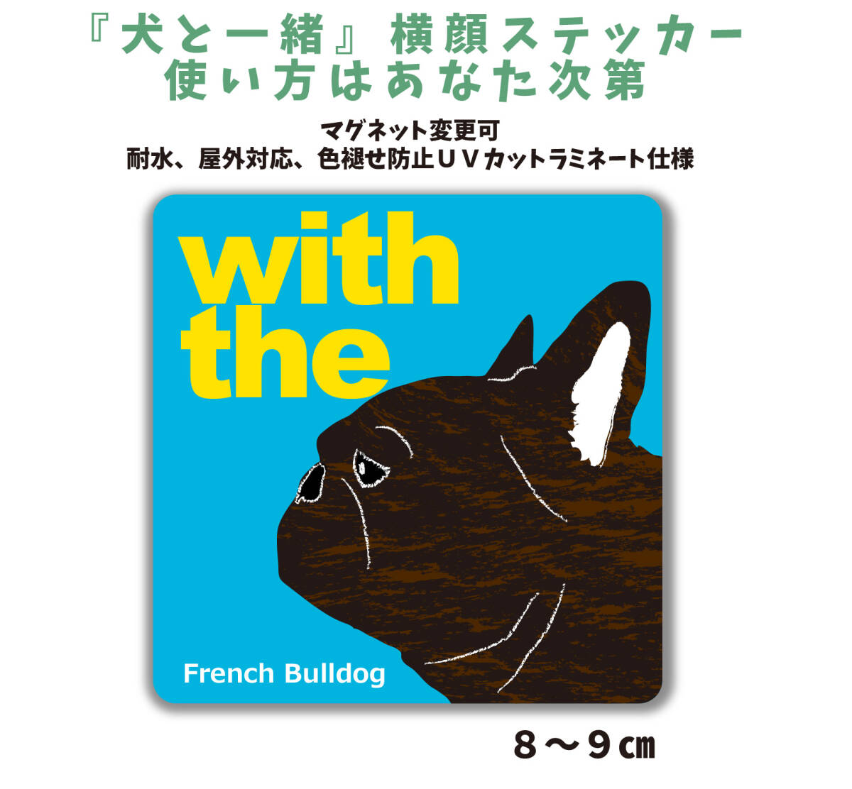 フレンチブルドッグ ブリンドル 『犬と一緒』【玄関 車 ポスト】ステッカー 名入れマグネット変更可 屋外 防水 カスタマイズ