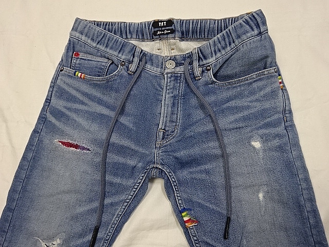 送料無料☆TMT☆ダメージ加工ジョグデニム☆M☆ウェスト約79-83cm