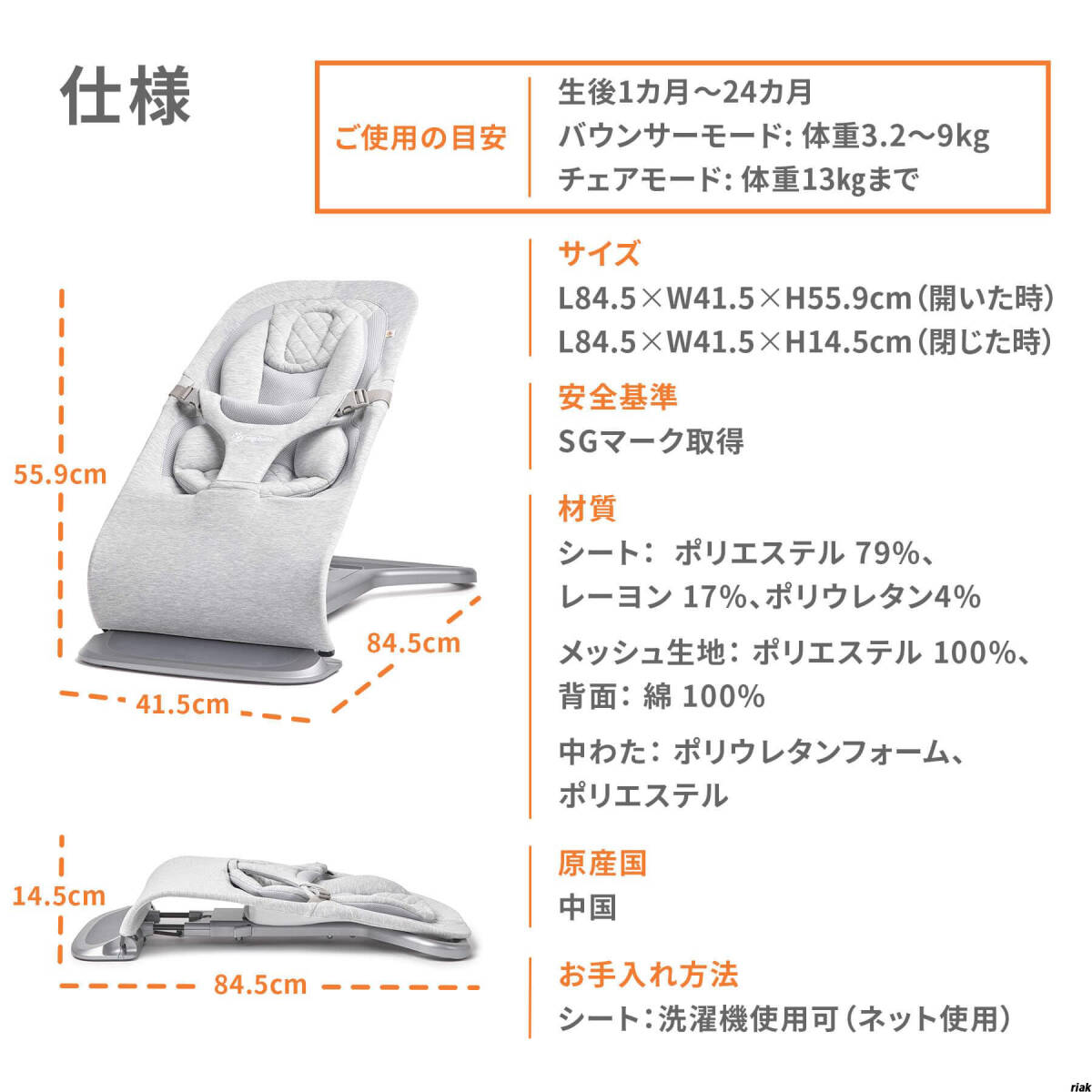 【成長に合わせてチェアモードに変更可能で長く使える】バウンサー コンパクト スタイリッシュ 軽量設計 折りたたみ可能 ポリエステル