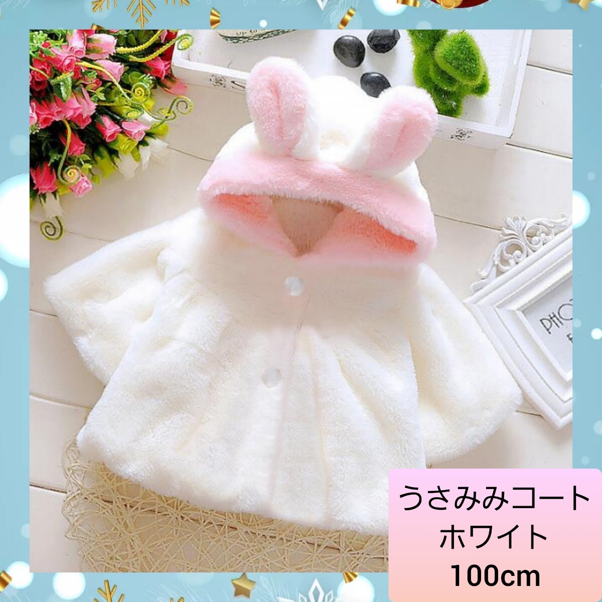 ふわふわもこもこ の ボア が気持ち良いうさぎさんのカワイイコートです