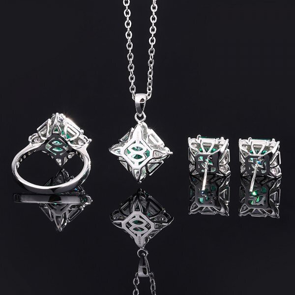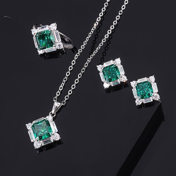 グリーントルマリンジュエリーセット(ネックレス、リング、ピアス)、 925スターリングシルバー