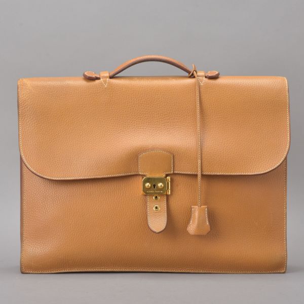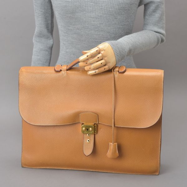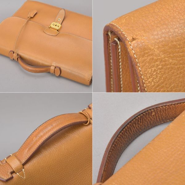 HERMES エルメス サックアデペッシュ41 ブリーフケース ビジネスバッグ □B刻印 鍵付 レザー キャメル ブラウン 鞄 /061216-25/Ωi.f