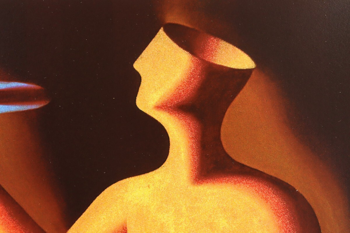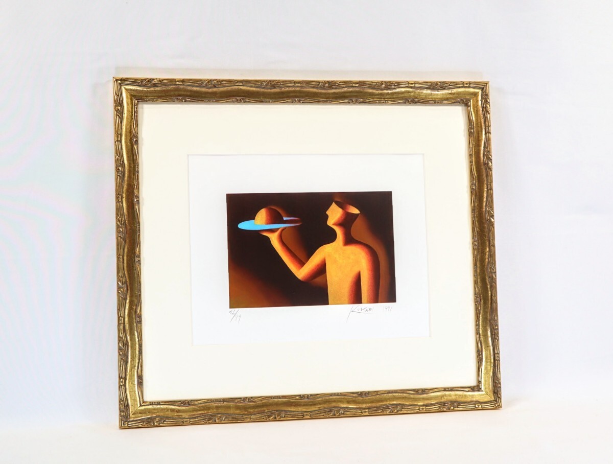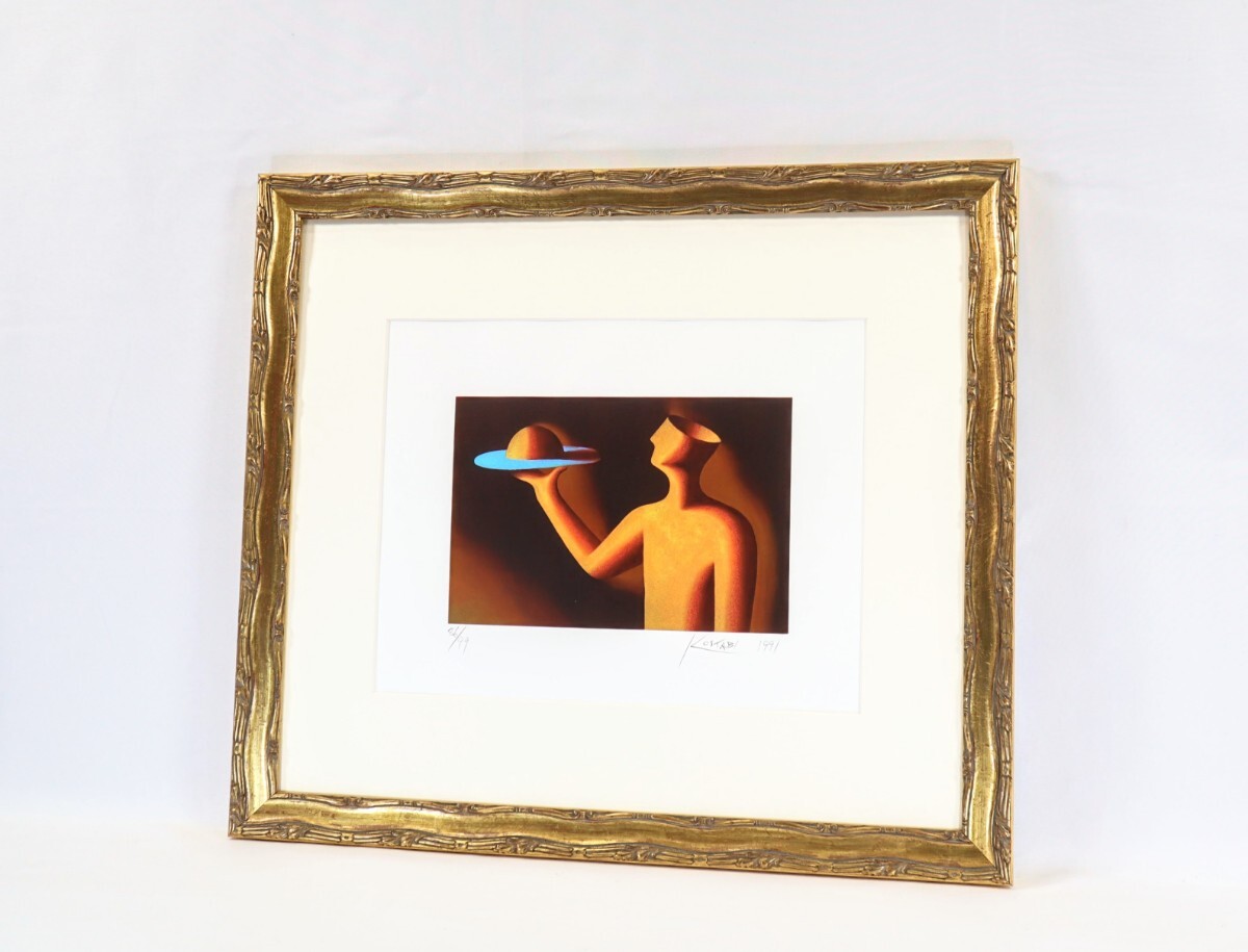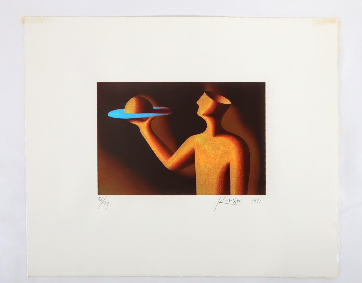 真作 マーク・コスタビ 1991年シルクスクリーン「Service サービス」画寸 23.5×15.5cm 米国人作家 顔のないマネキンの様でシュール 10583