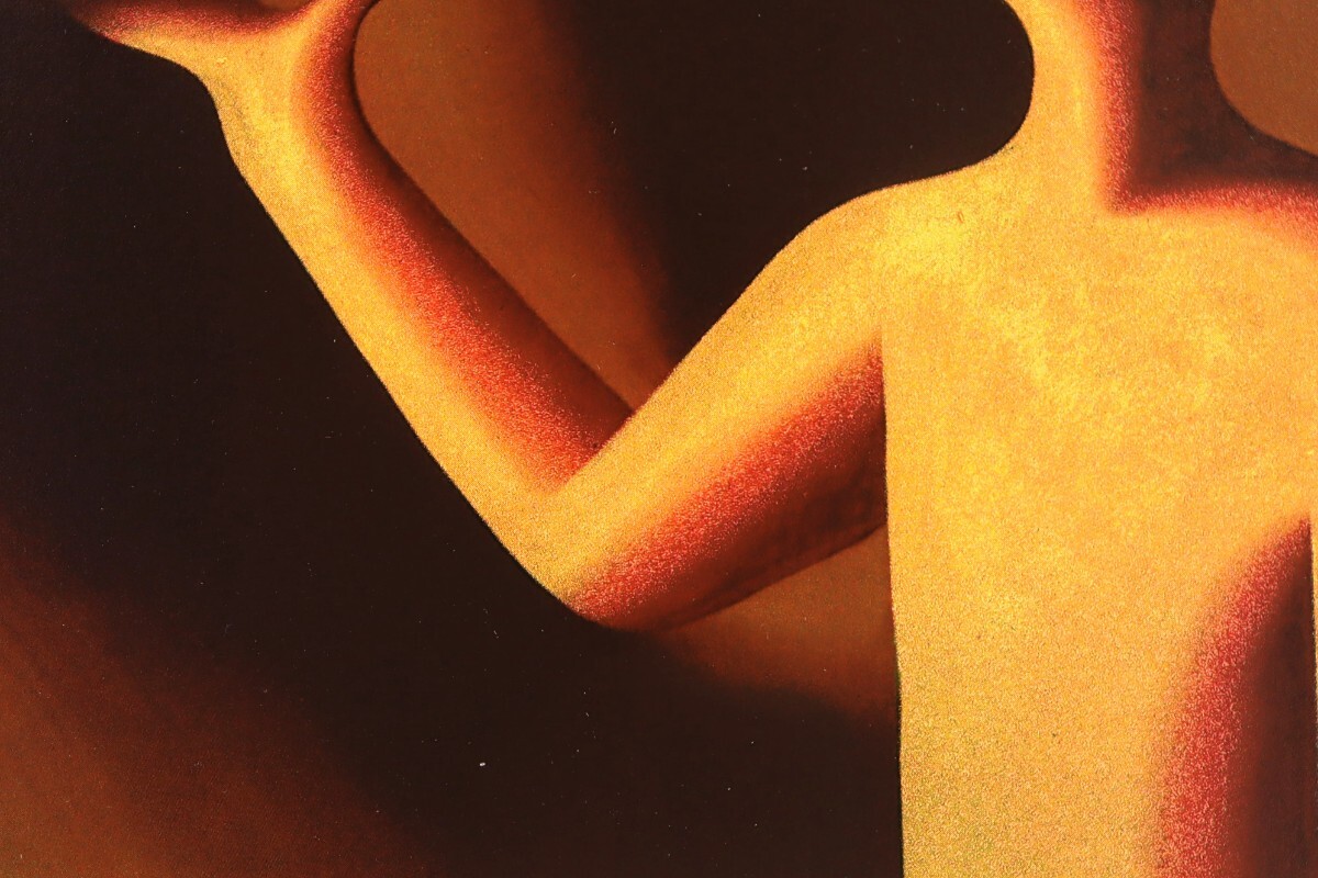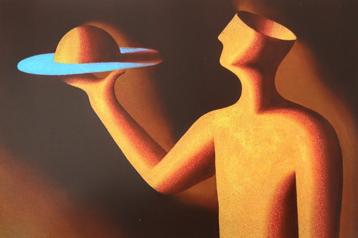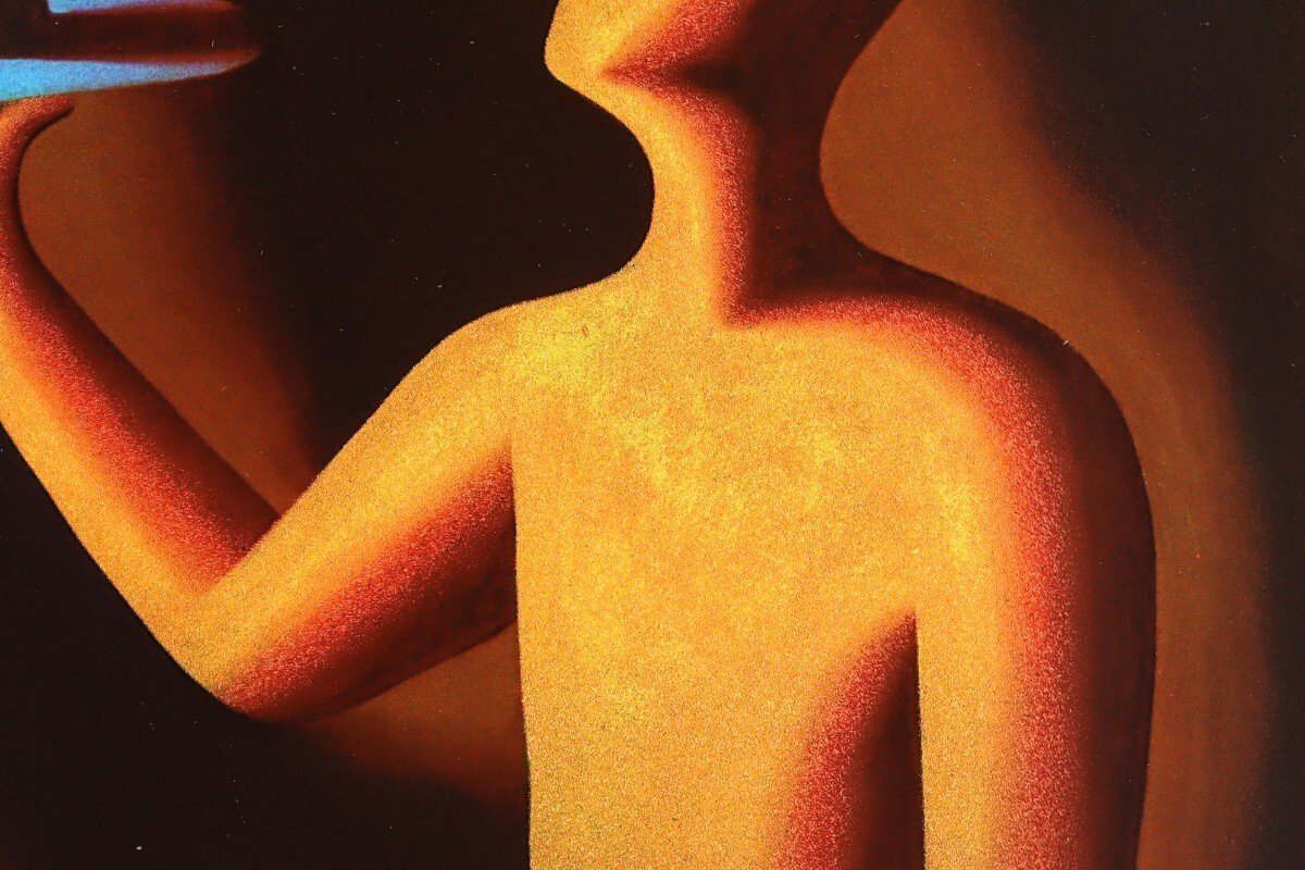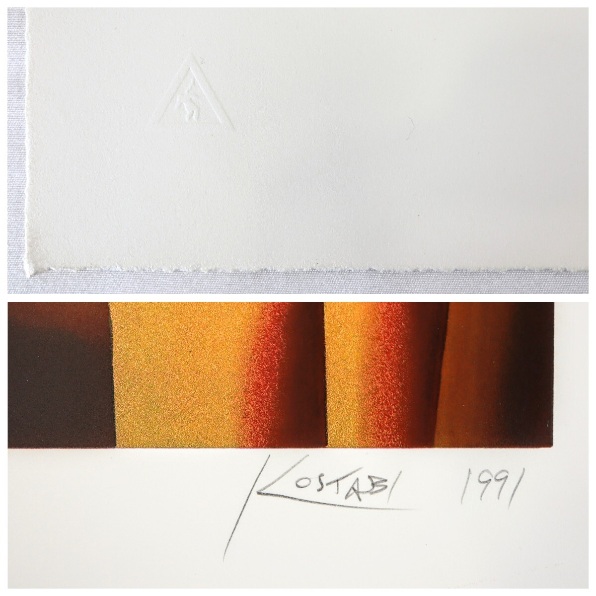 真作 マーク・コスタビ 1991年シルクスクリーン「Service サービス」画寸 23.5×15.5cm 米国人作家 顔のないマネキンの様でシュール 10583