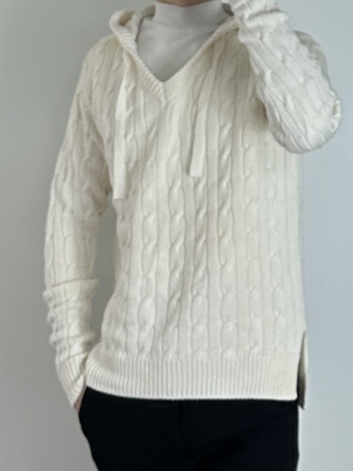 ケーブル編み×パーカーでラフで優しく上品なアイテム。