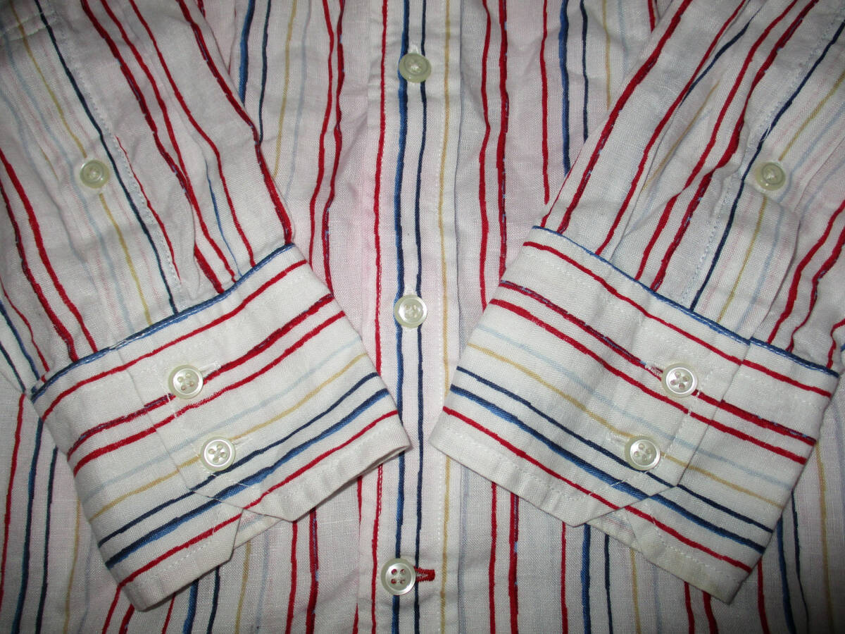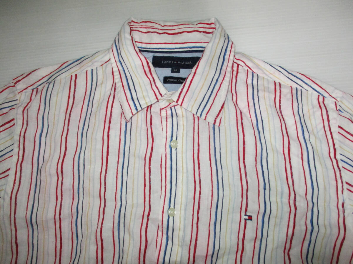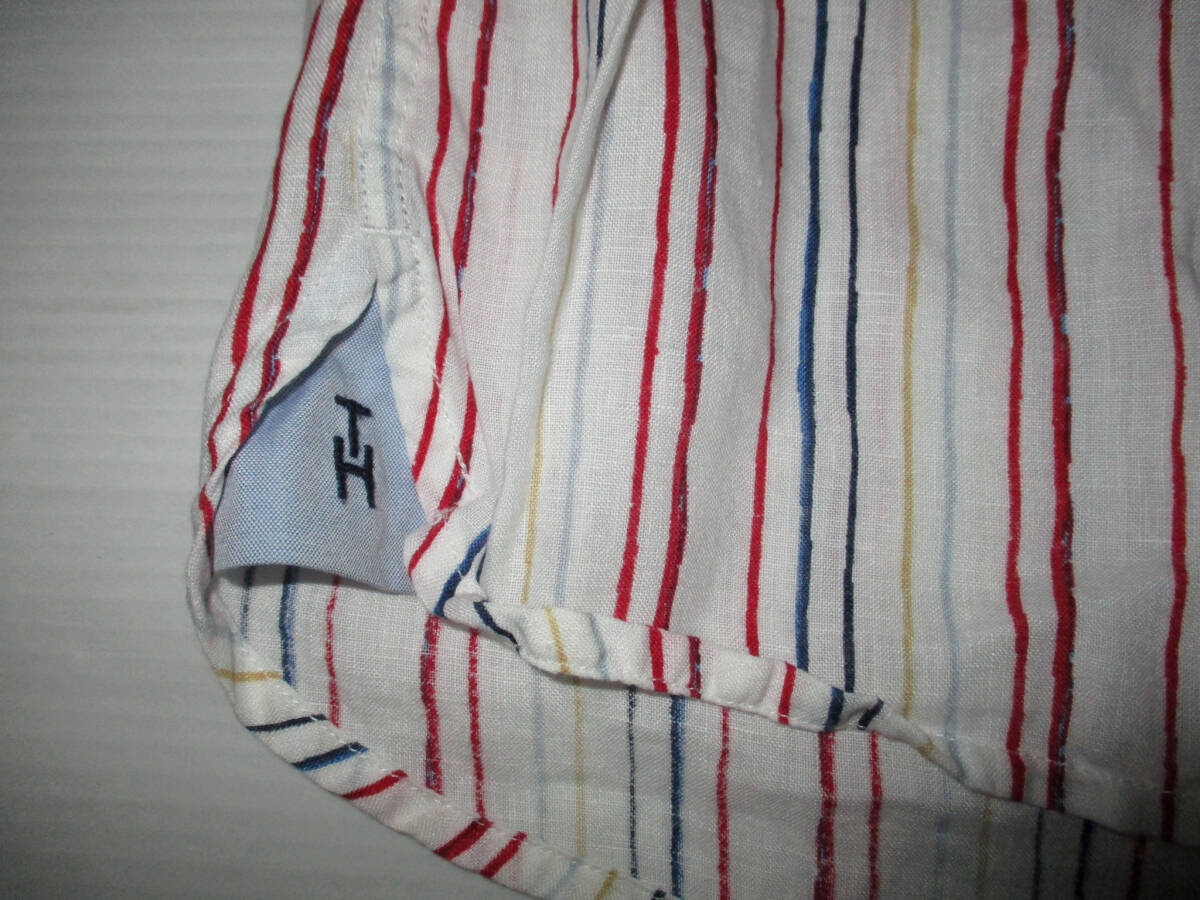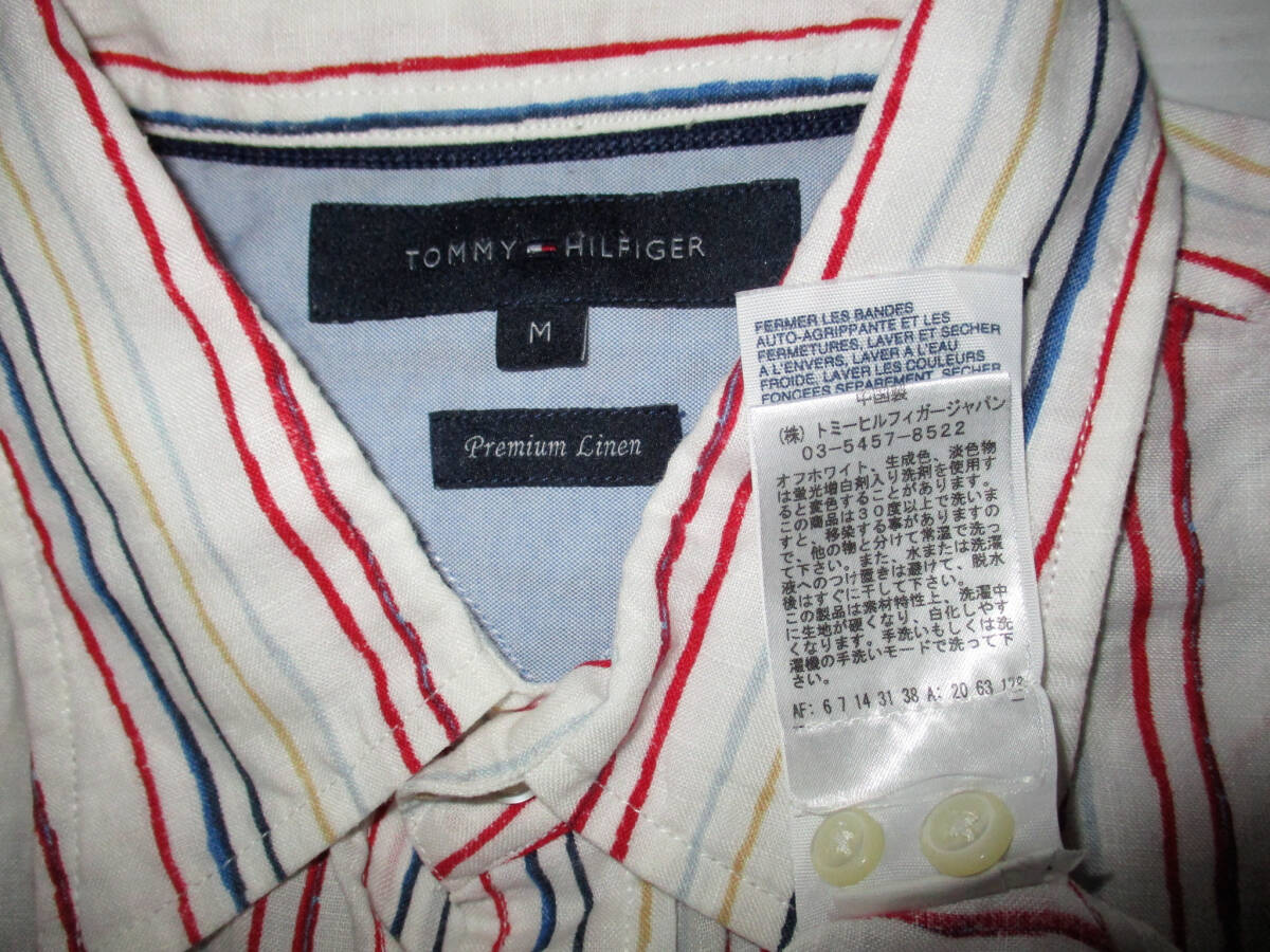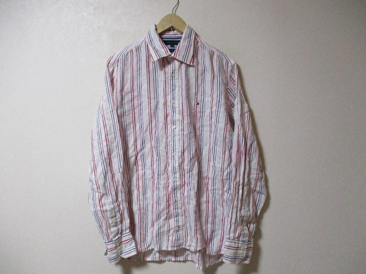 TOMMY HILFIGER トミーヒルフィガー 長袖 リネンシャツ サイズM です。正規品です。素材は麻 100です。色は白地に赤×ブルー×黄色です。色は画像でご判断ください。