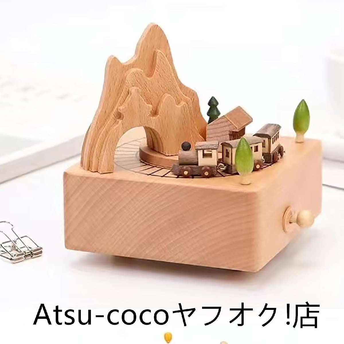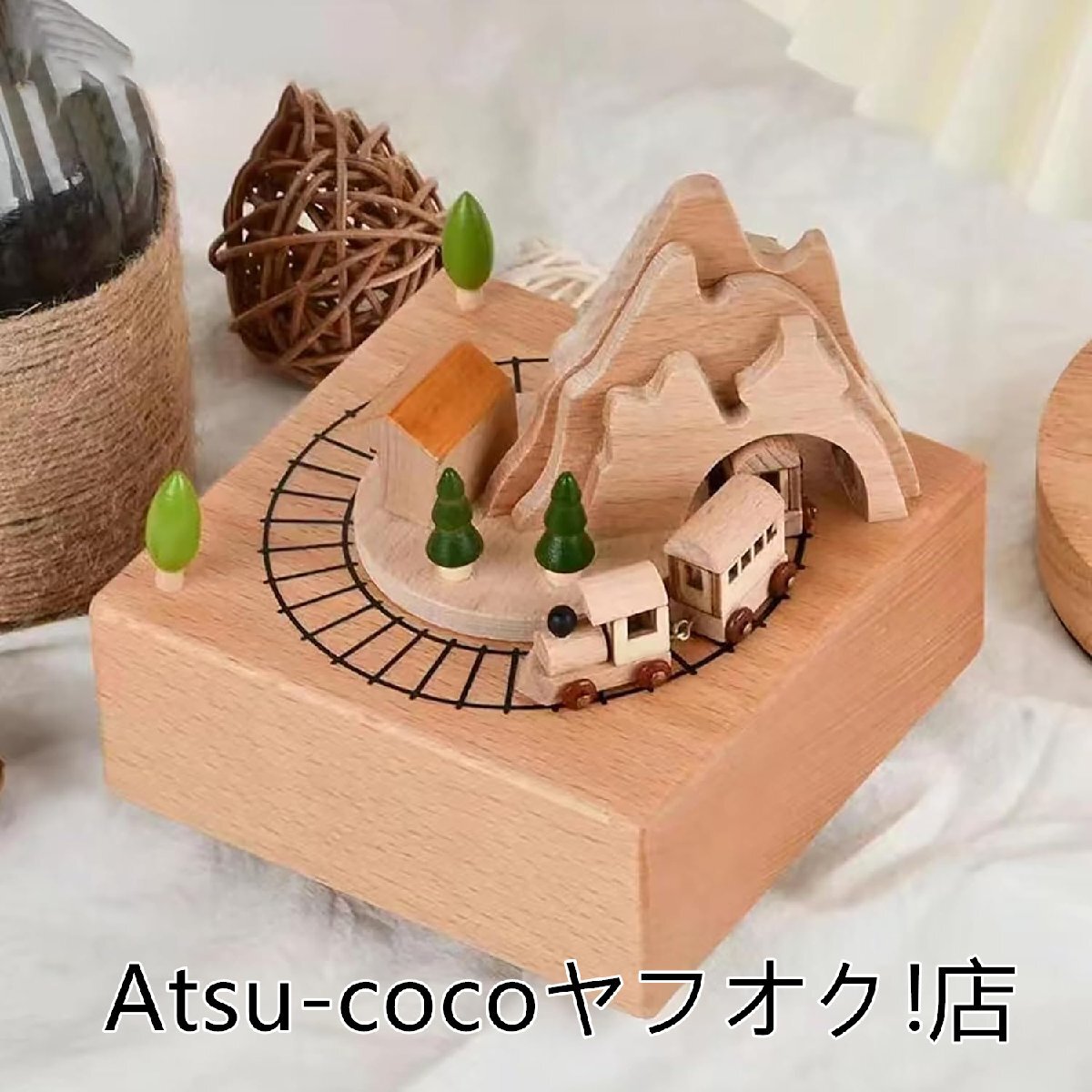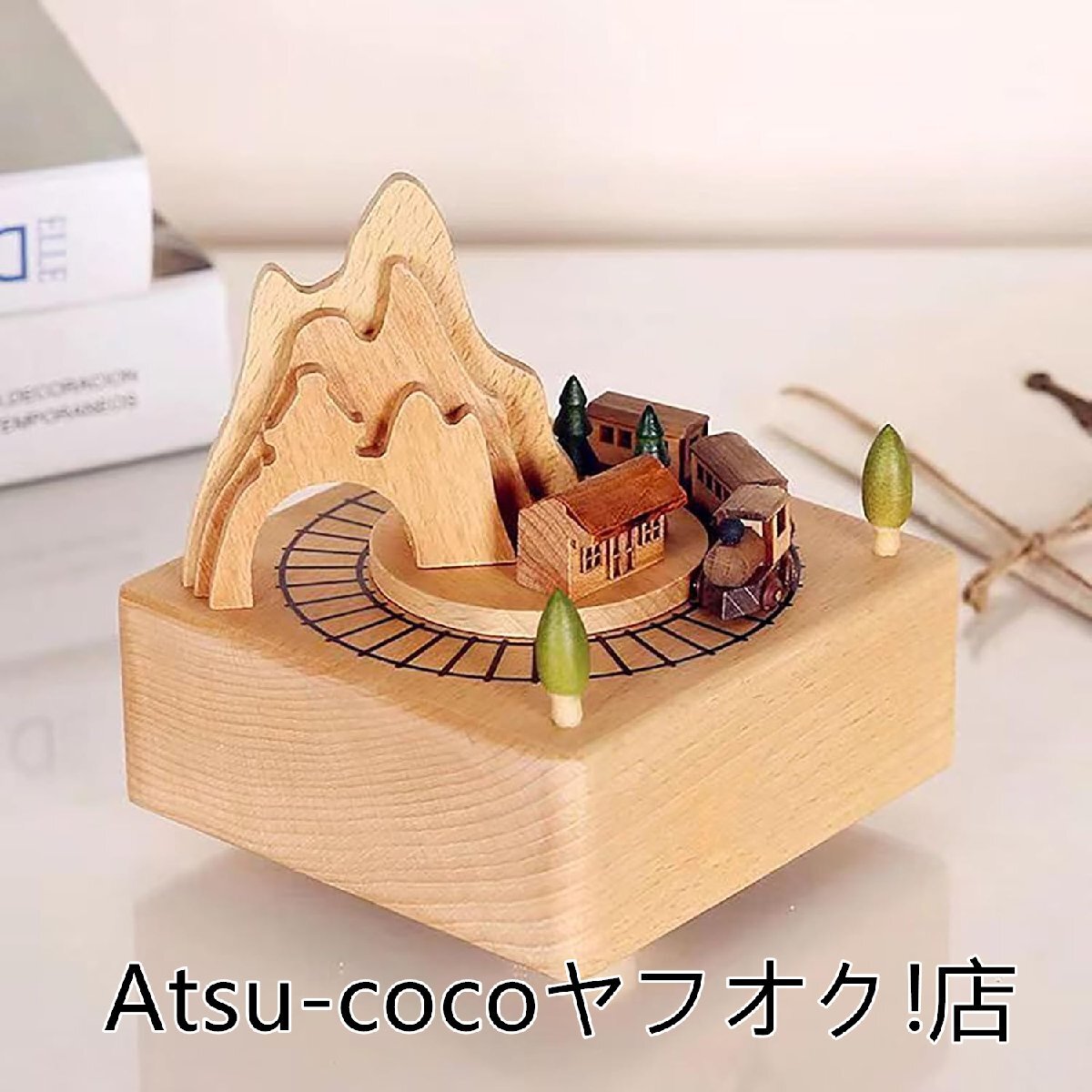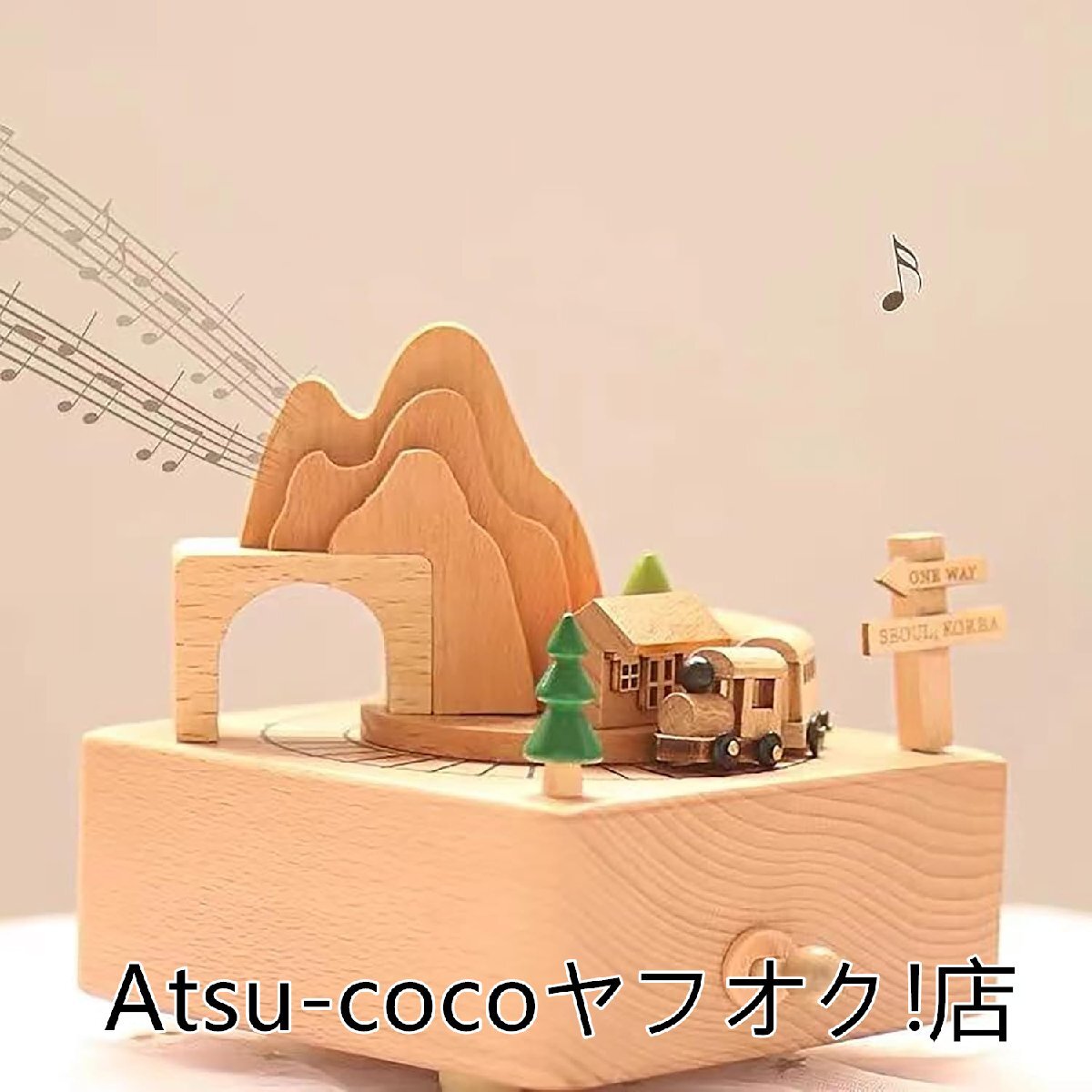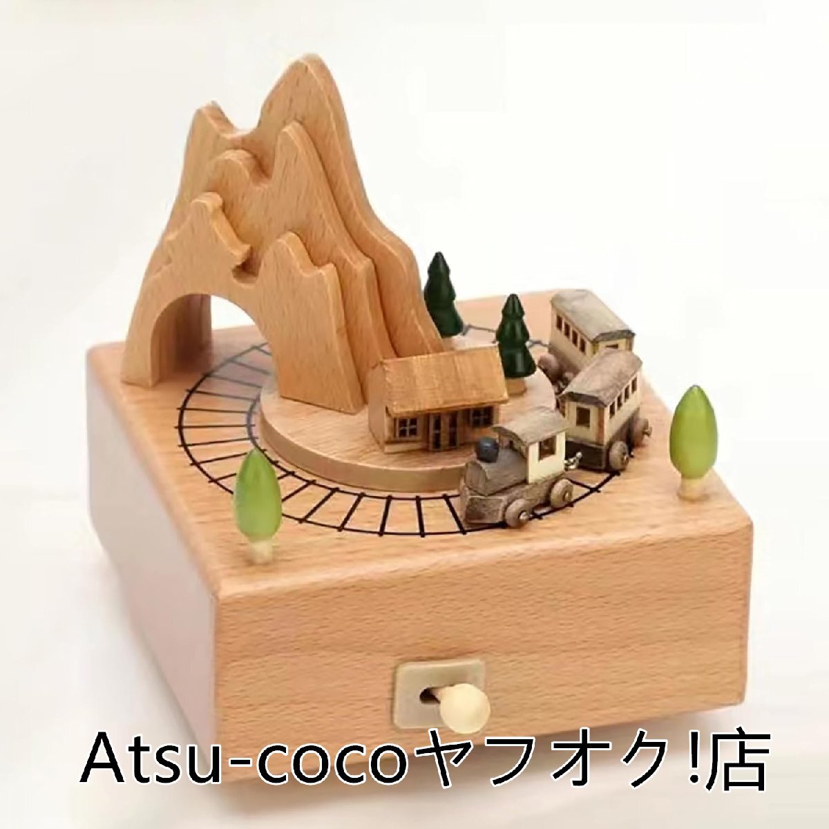 ◆人気美品◆オルゴール ミュージックボックス立体3D リアルウッド彫刻 睡眠誘導マシン寝かしつけおもちゃ可愛い おしゃれ寝室(山奥の電車)