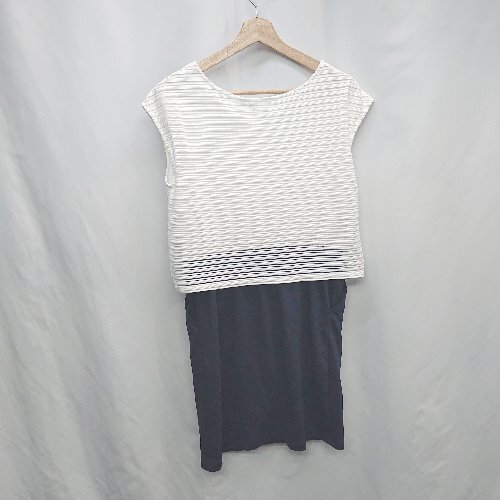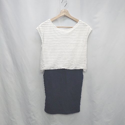 ◇ ⊂ INDEX インデックス 切り替えデザイン ボーダー柄 膝上丈 ワンピース サイズM ホワイト ネイビー レディース E