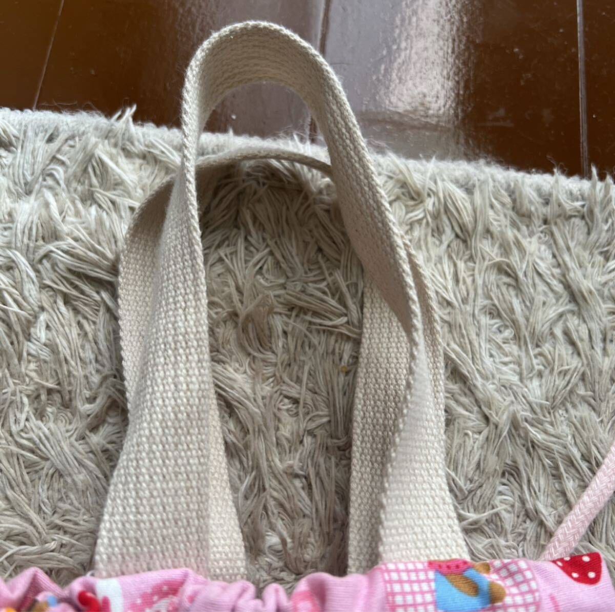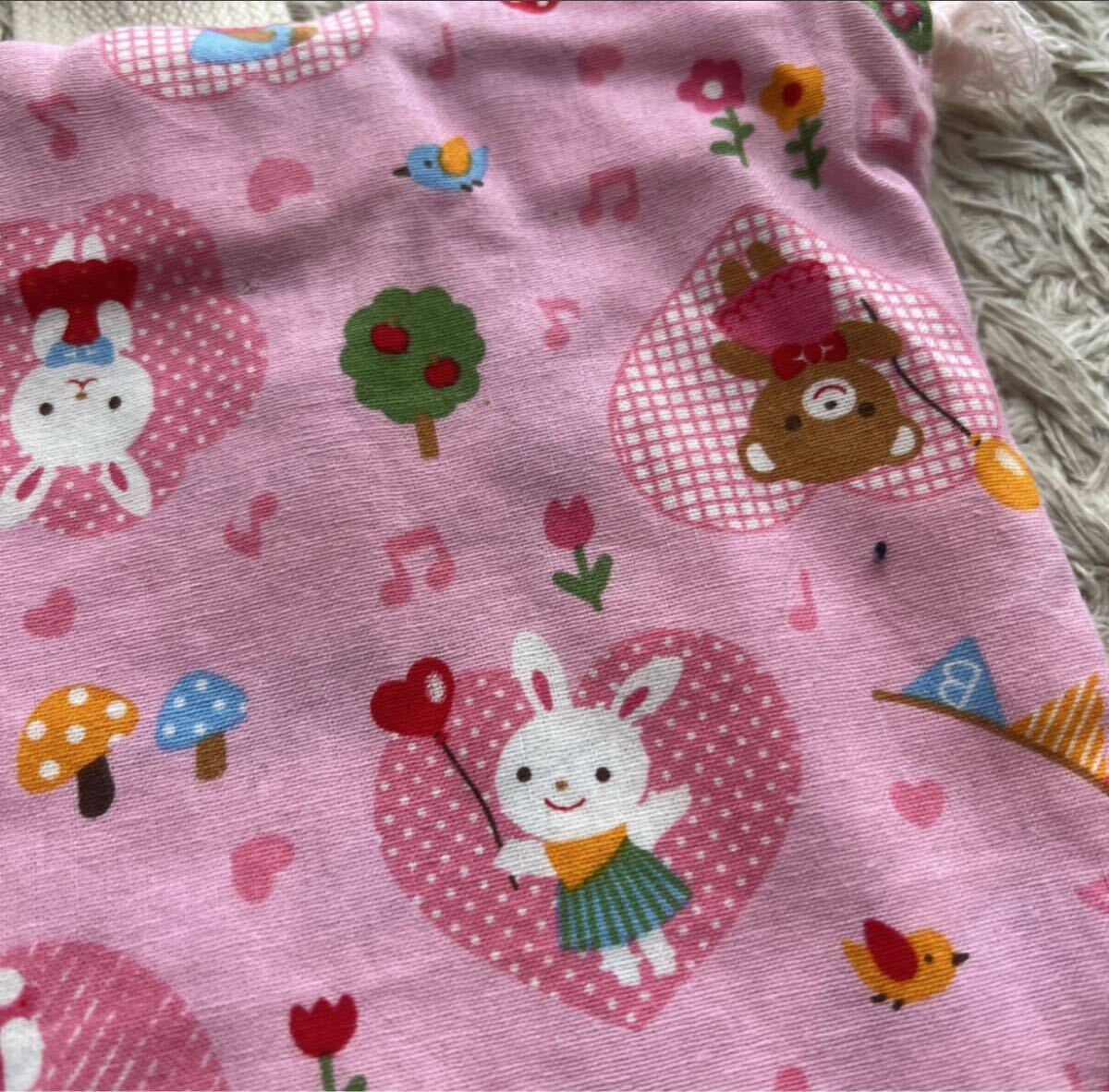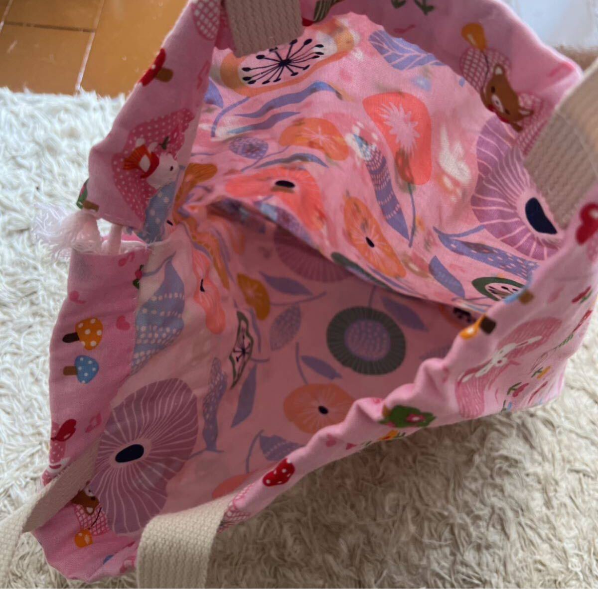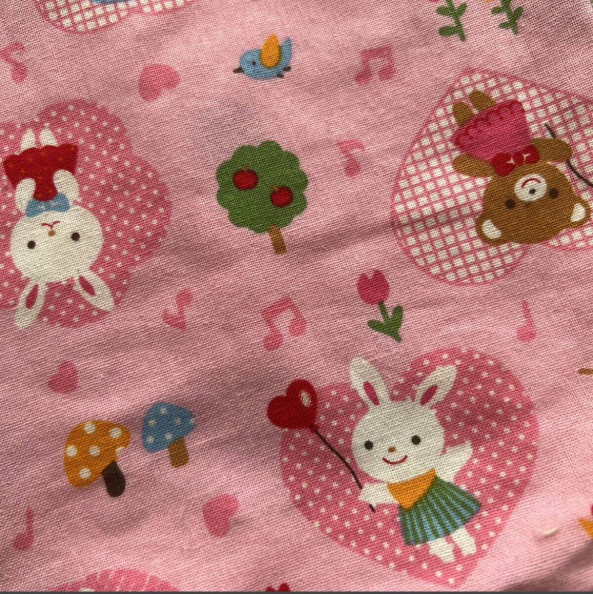 ハンドメイド キッズ うさぎプリント 巾着トートバッグ 約34×32cm