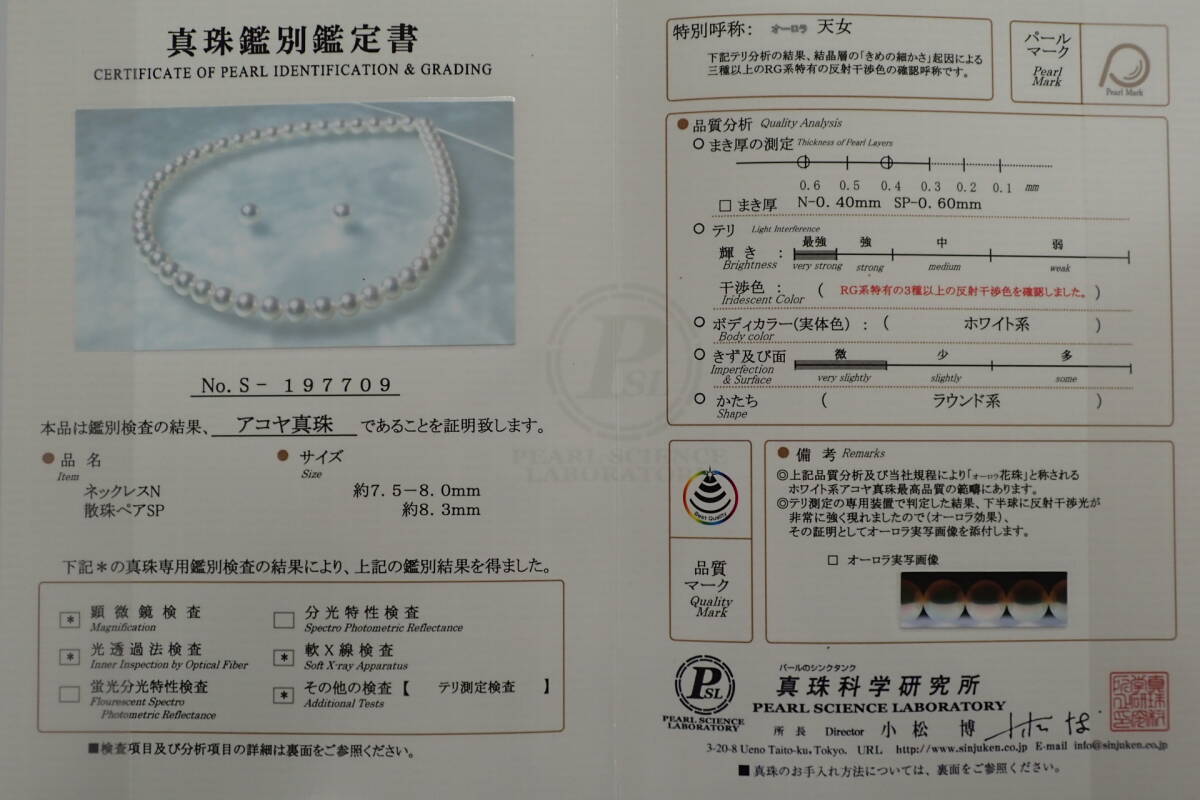 | 商品説明 | 18/美品 オーロラ花珠 天女 アコヤ真珠 K14WG ネックレス約(7.5-8.0)㎜珠 イヤリング約8.3㎜珠 セット です。 |