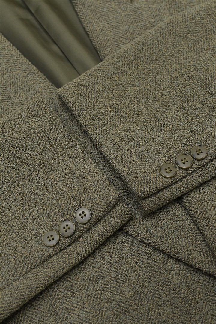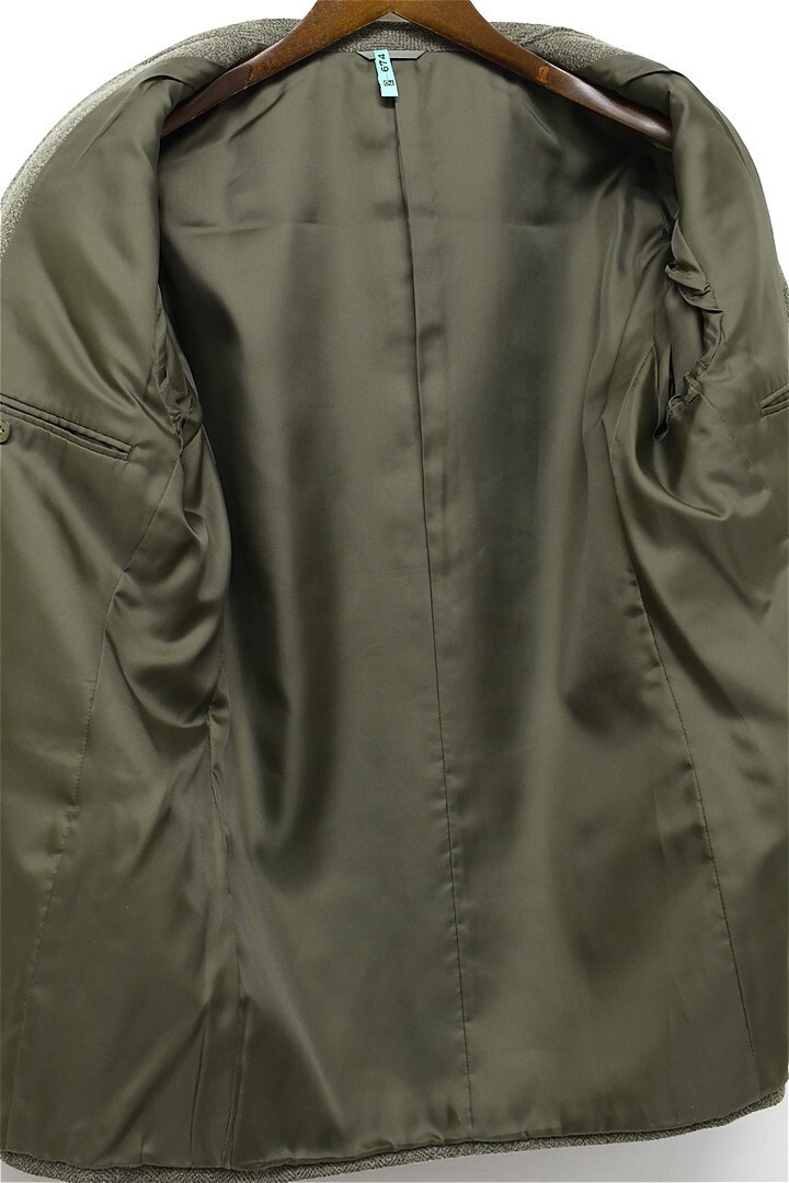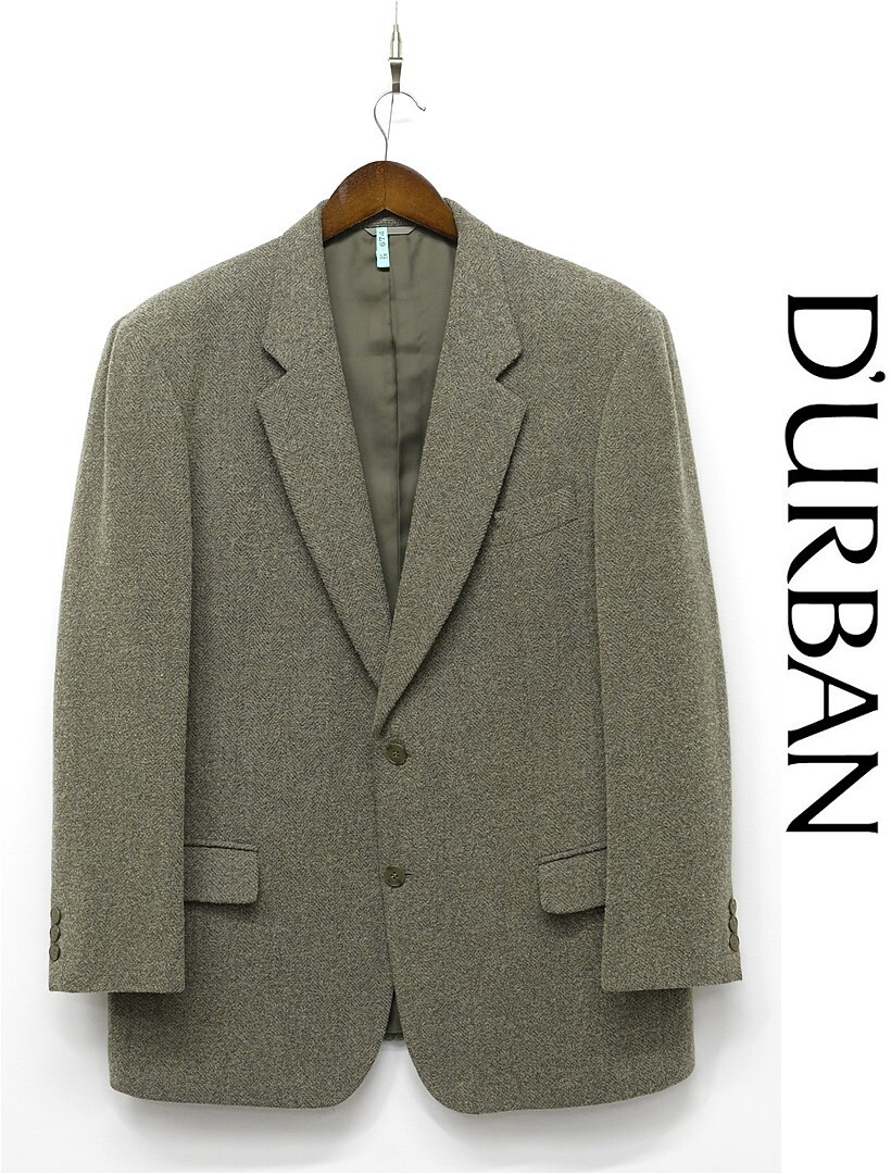 Z117/美品 DURBAN ツイード テーラードジャケット ヘリンボーン 2つボタン 総裏 ノーベント XL 緑 秋冬